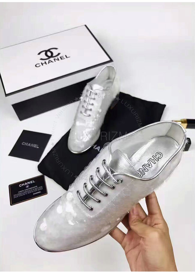 CHANEL-G32379 샤넬 투명 메시 시퀸 레이스업 여성용