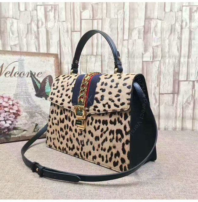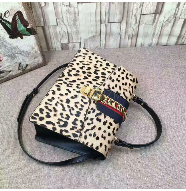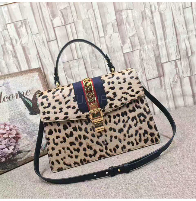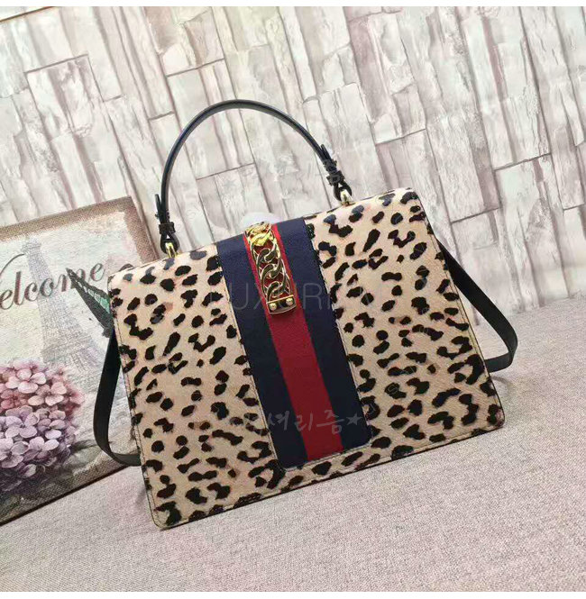 [스페셜오더]GUCCI-431665 8020 구찌 Gucci Sylvie 레오파드 프린트 탑 핸들 백