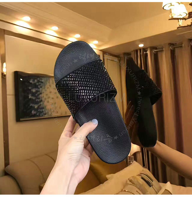 FERRAGAMO-034877 페라가모 살바토레 블랙 화이트 크리스탈 슬리퍼 남성용