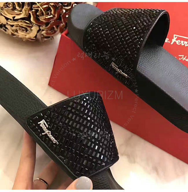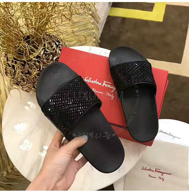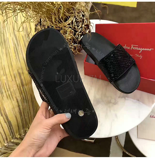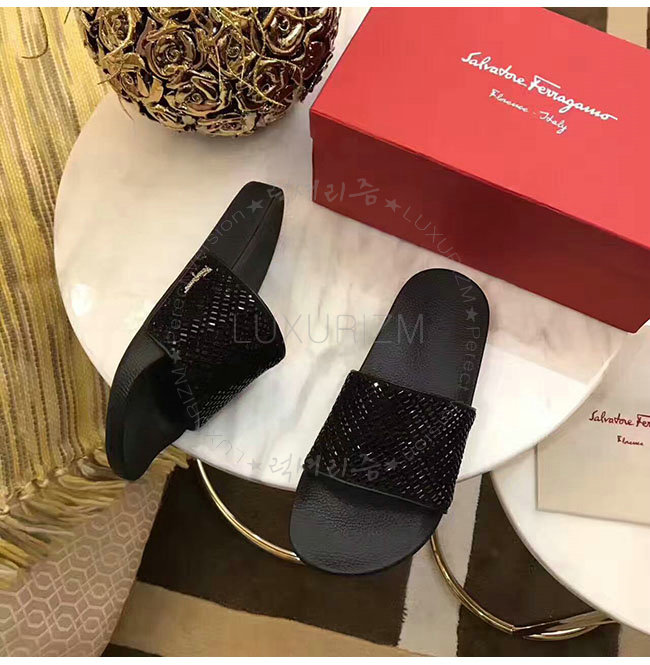 FERRAGAMO-034834 페라가모 페라가모 블랙 크리스탈 슬리퍼 여성용