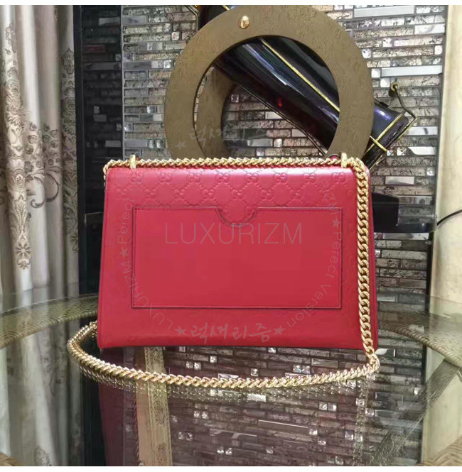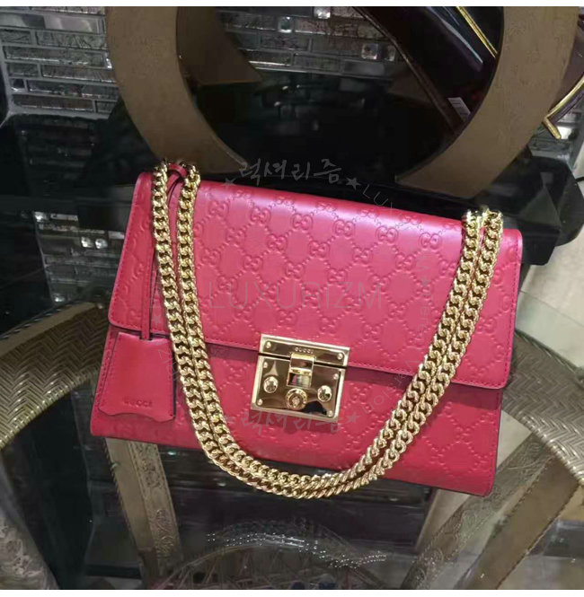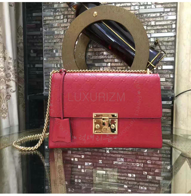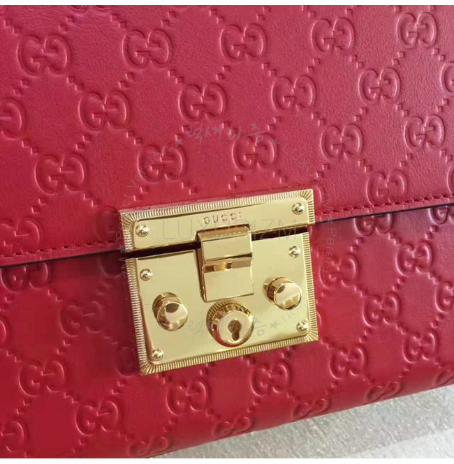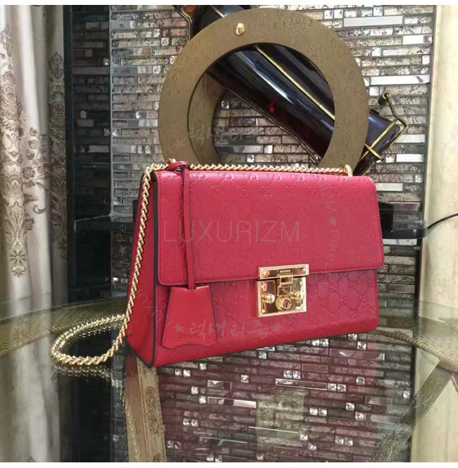 [스페셜오더]GUCCI-409486 6433 구찌 패드락 Gucci 시그니처 가죽 숄더백 레드