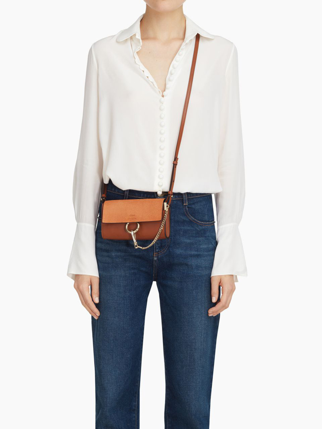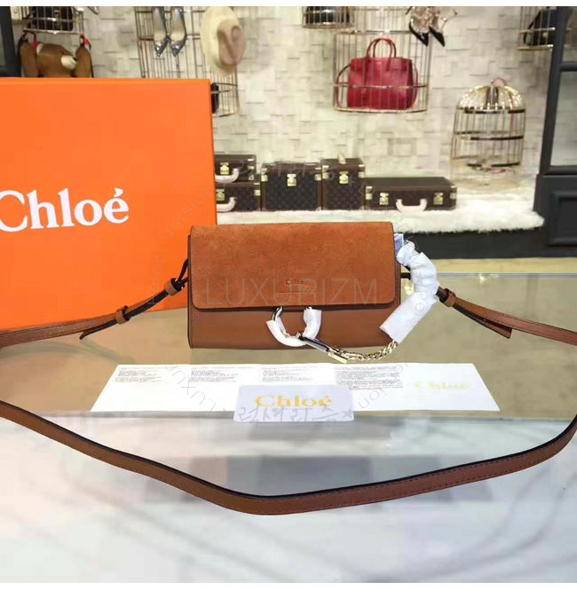 [스페셜오더]Chloe-3P0796 끌로에 FAYE 스트랩 지갑 TOBACCO