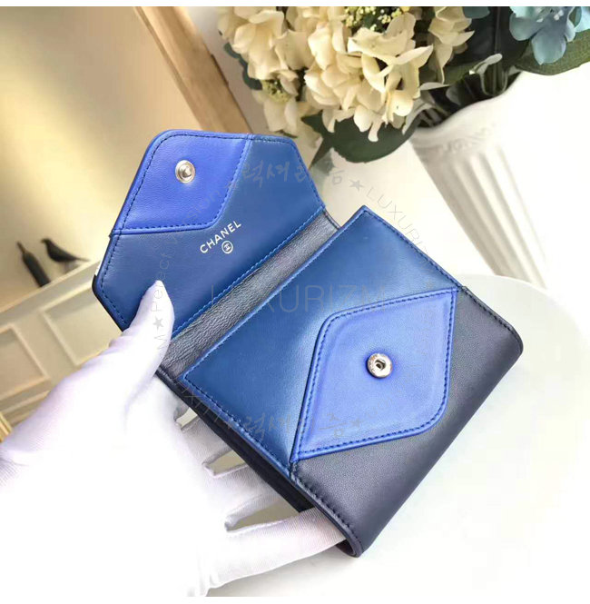 [스페셜오더]CHANEL-A82624 샤넬 램스킨 레커드 실버 메탈 더블 월릿 네이비