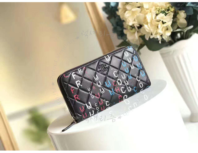 [스페셜오더]CHANEL-A82655 샤넬 램스킨 실버 메탈 저퍼 지갑 블랙