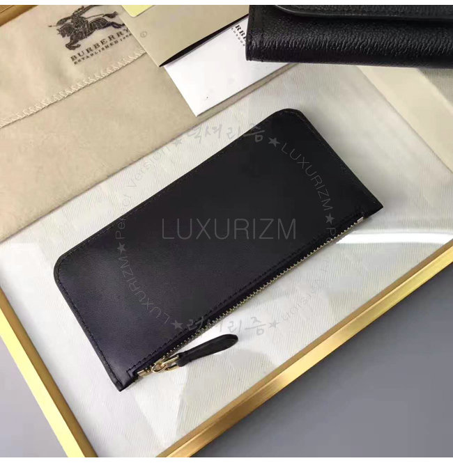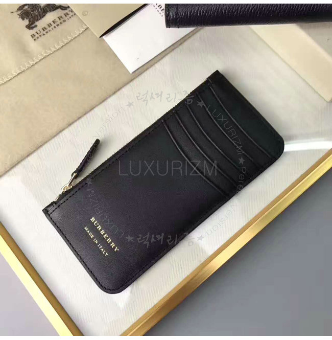 주머니 2개 지퍼여밈 동전케이스 카드수납칸 6개 앞면의 버버리 양각로고.