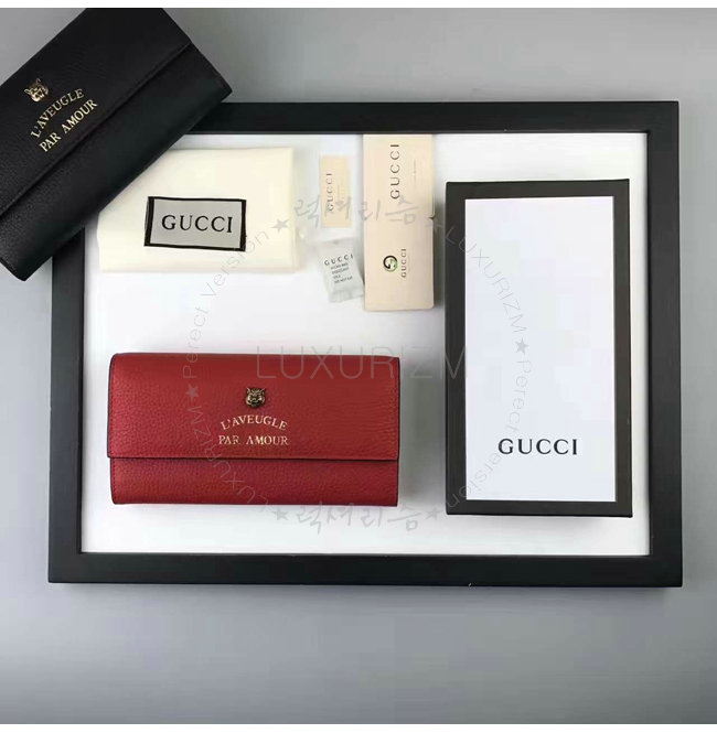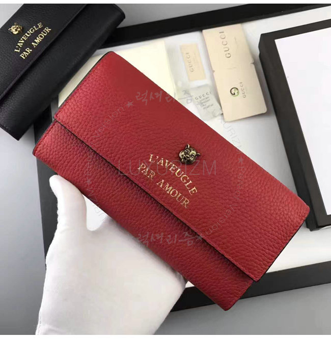 [스폐셜오더]GUCCI-453164 6433 구찌 [Animalier] 애니멀리에 컬렉션 레드 가죽 장지갑