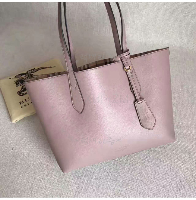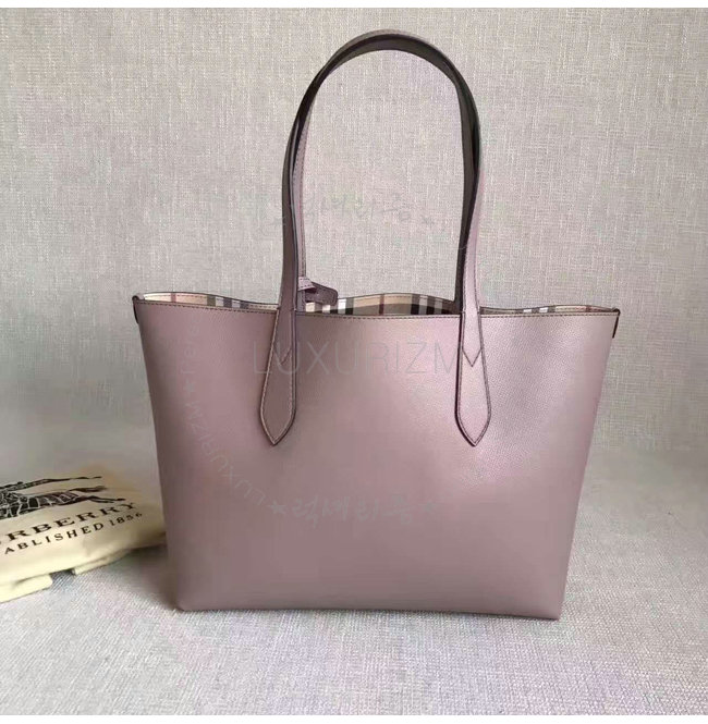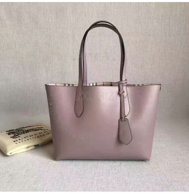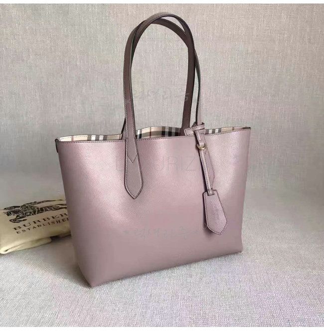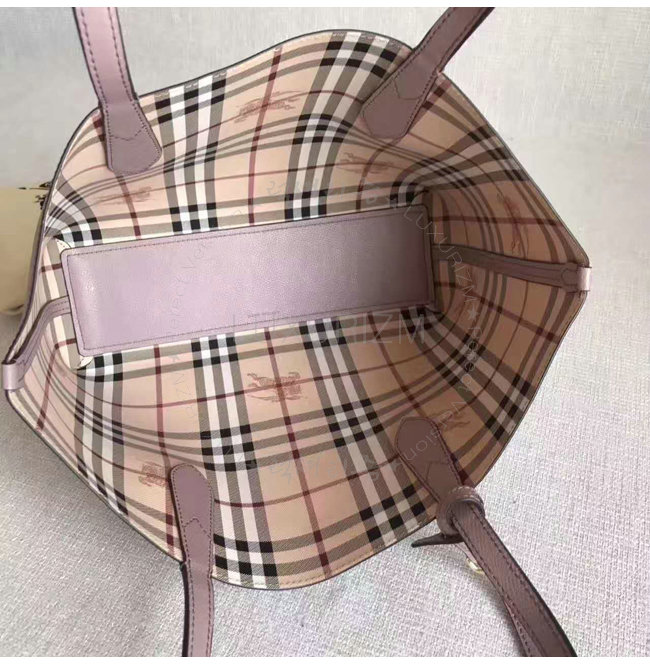 [스페셜오더]BURBERRY-40495851 버버리 스몰 헤이마켓 체크 가죽 리버시블 토트 라이트 엘더베리