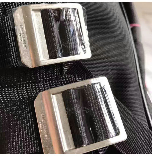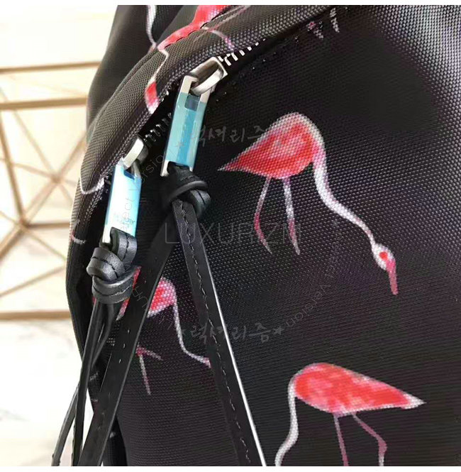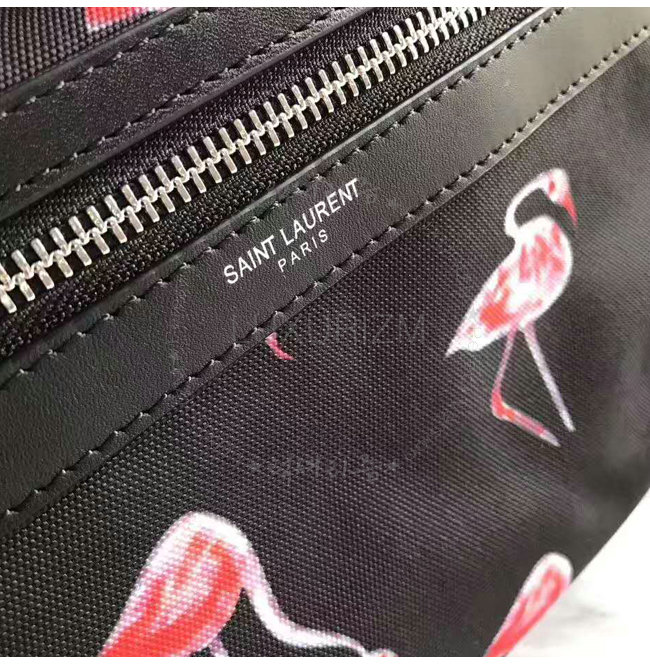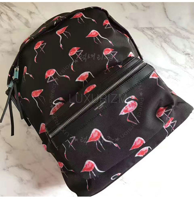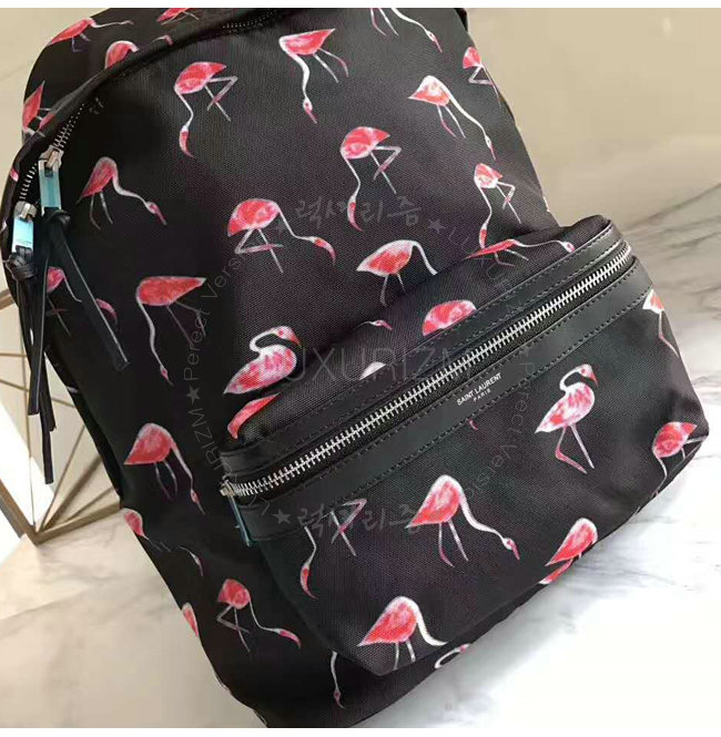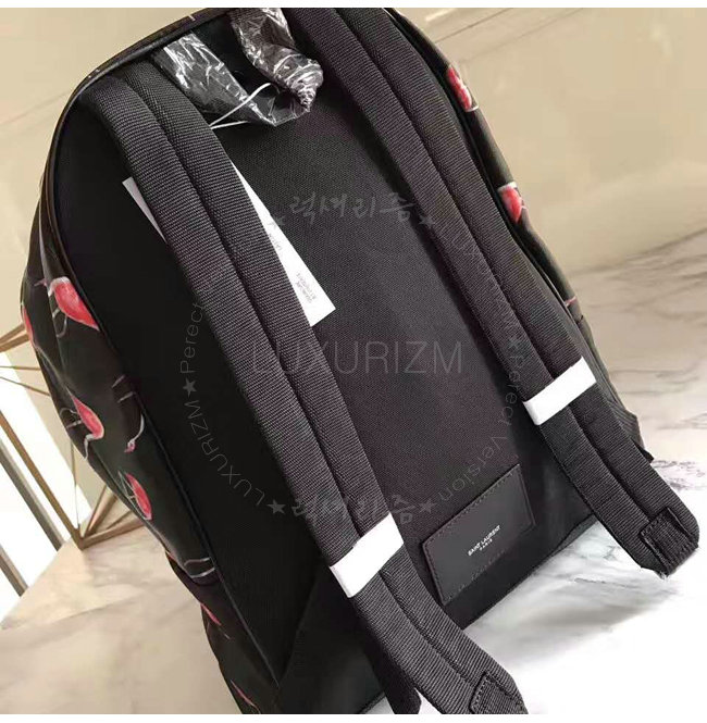 SAINT LAURENT-465448 생 로랑 블랙 핑크 플라밍고 프린티드 나일론 캔버스 시티 백팩