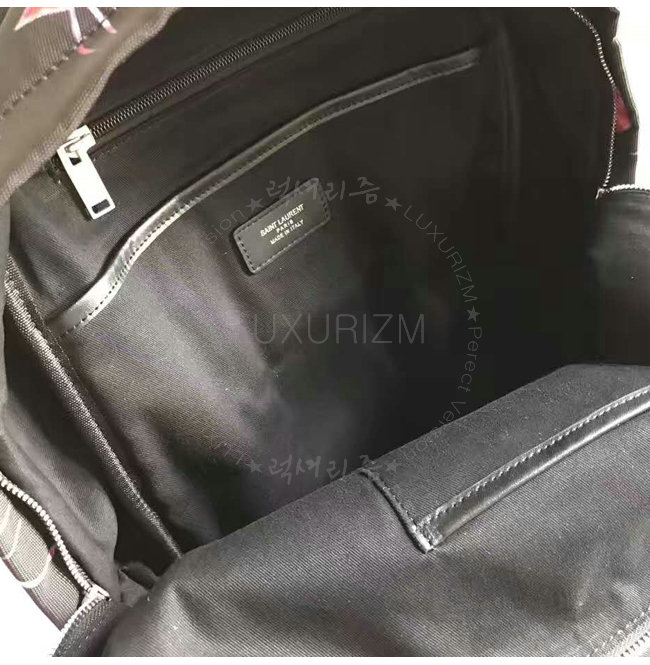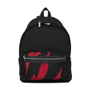 SAINT LAURENT-465448 생 로랑 블랙 레드 나일론 캔버스 시티 플레임 프린트 백팩