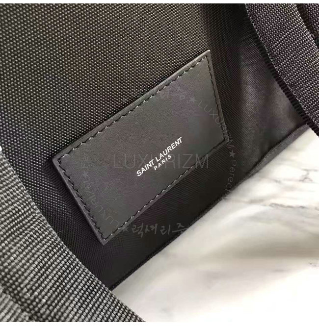 생 로랑 시그니처가 양각으로 새겨진 외부지퍼 포켓 휴대폰 포켓