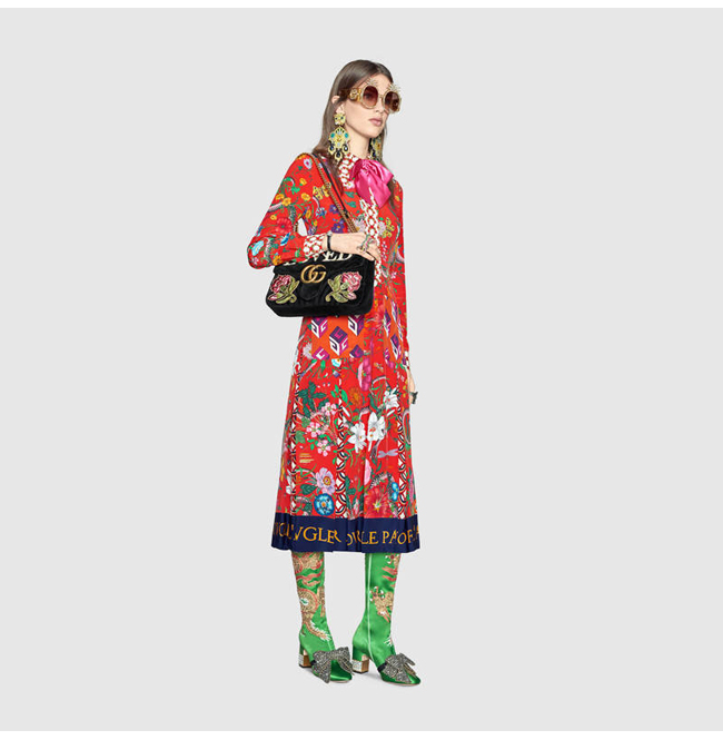 [스폐셜오더]GUCCI-443496 5668 구찌 GG Marmont 벨벳 자수 디테일 미디엄 체인 숄더백 보르도
