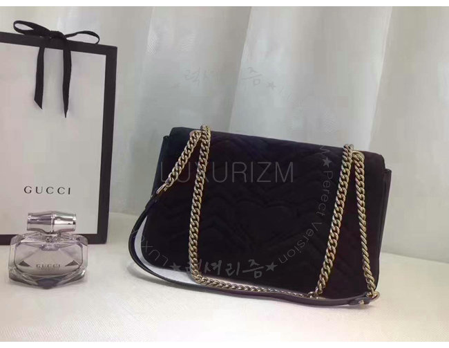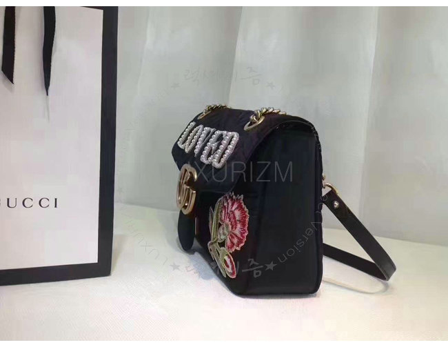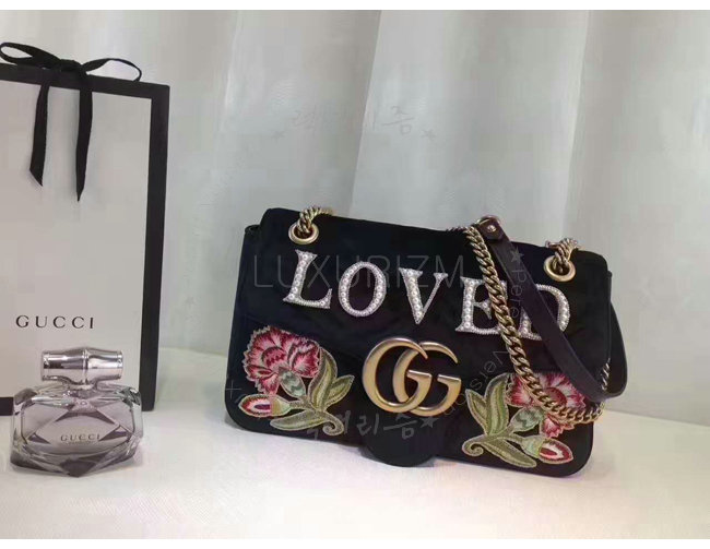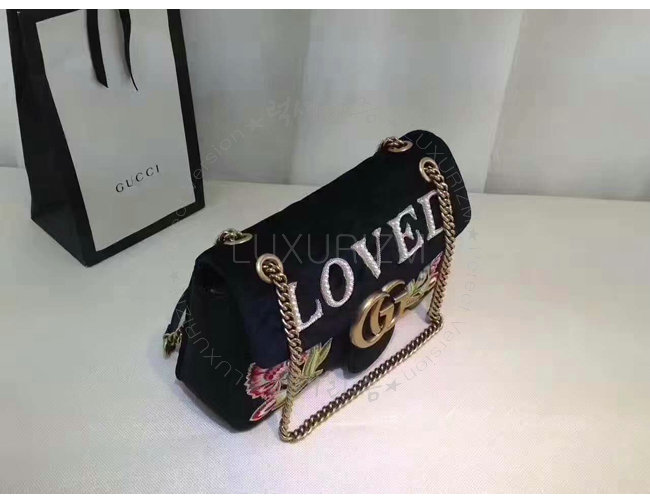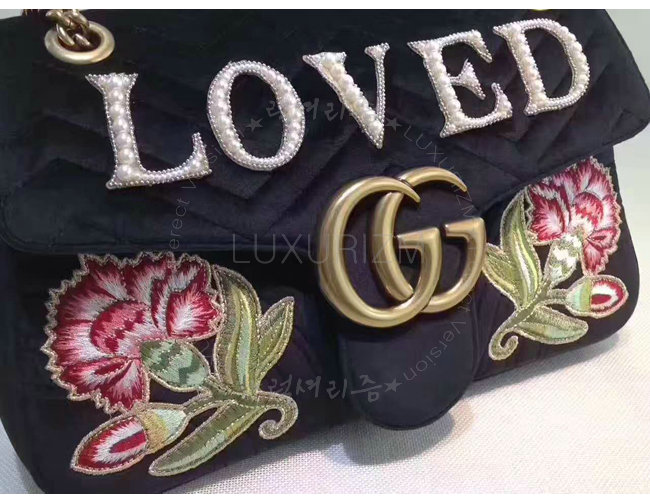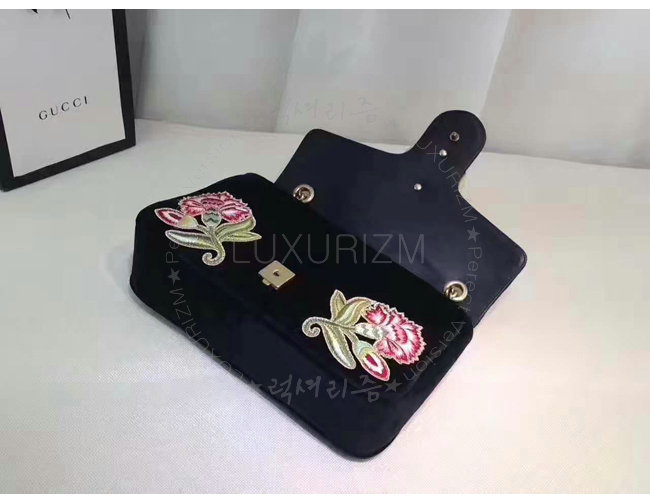 [스폐셜오더]GUCCI-443496 1093 구찌 GG Marmont 벨벳 자수 디테일 미디엄 체인 숄더백 코발트 블랙