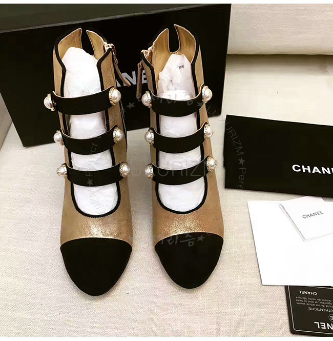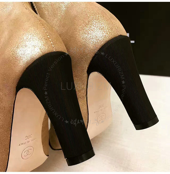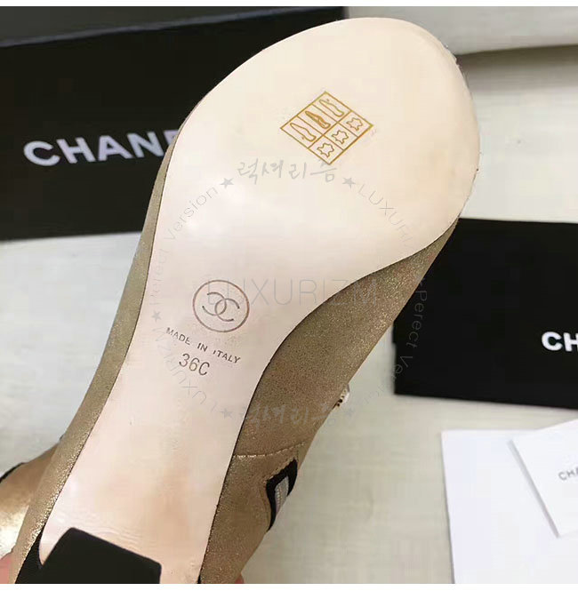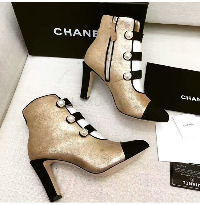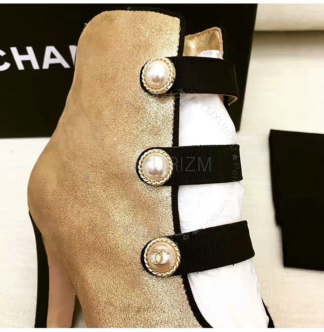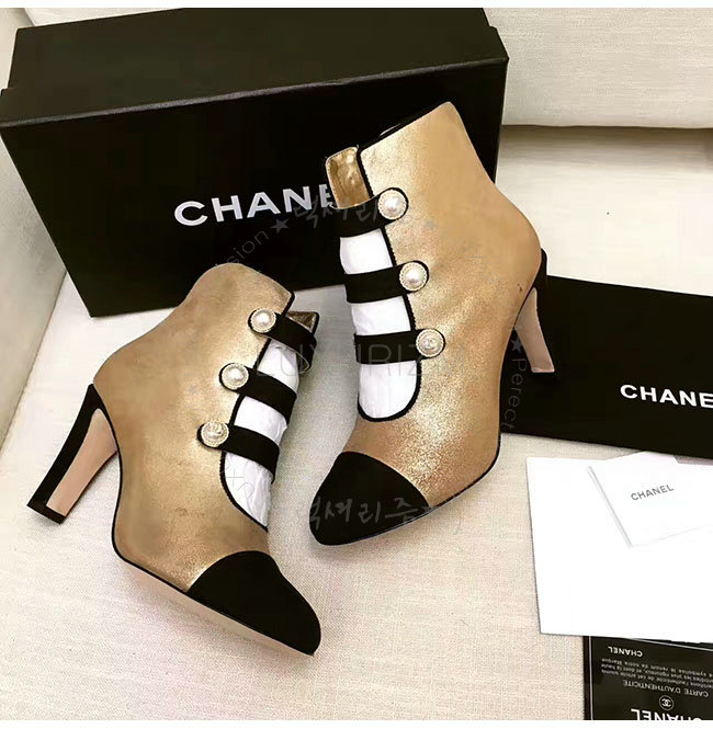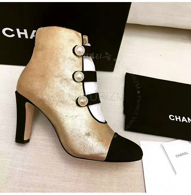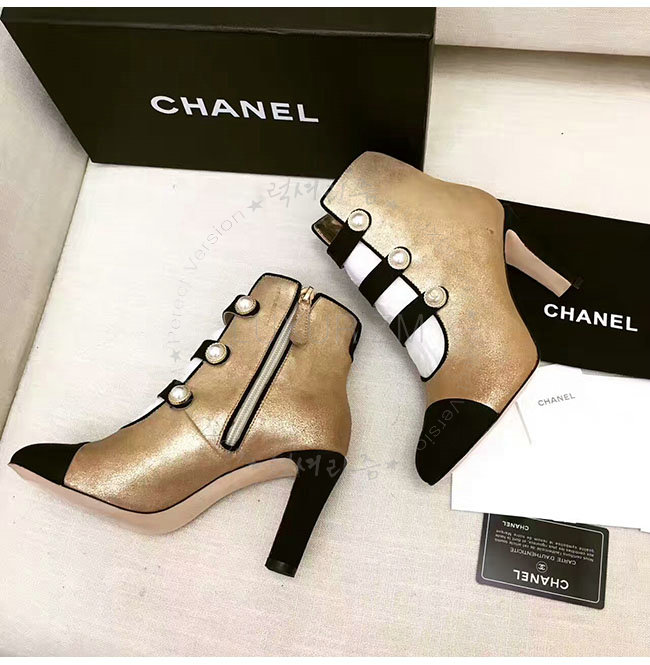 [스페셜오더]CHANEL-G32924 샤넬 메탈릭 카프스킨 그로그랭 골드 블랙 쇼트 부츠 여성용