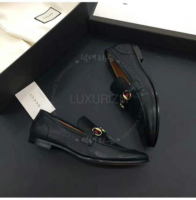[스페셜오더]GUCCI-322500 1060 구찌 블랙 가죽 홀스빗 웹 로퍼 남성용