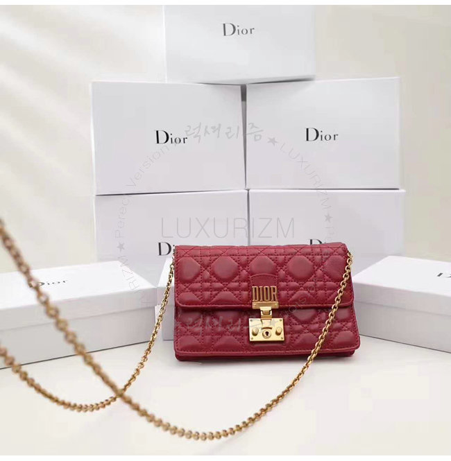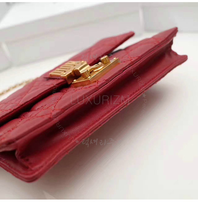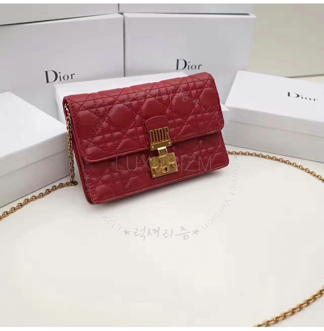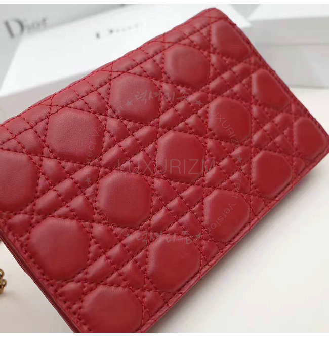 DIOR-S2012 디올 레드 까나쥬 양가죽 DIORADDICT WALLET ON CHAIN 클러치 백