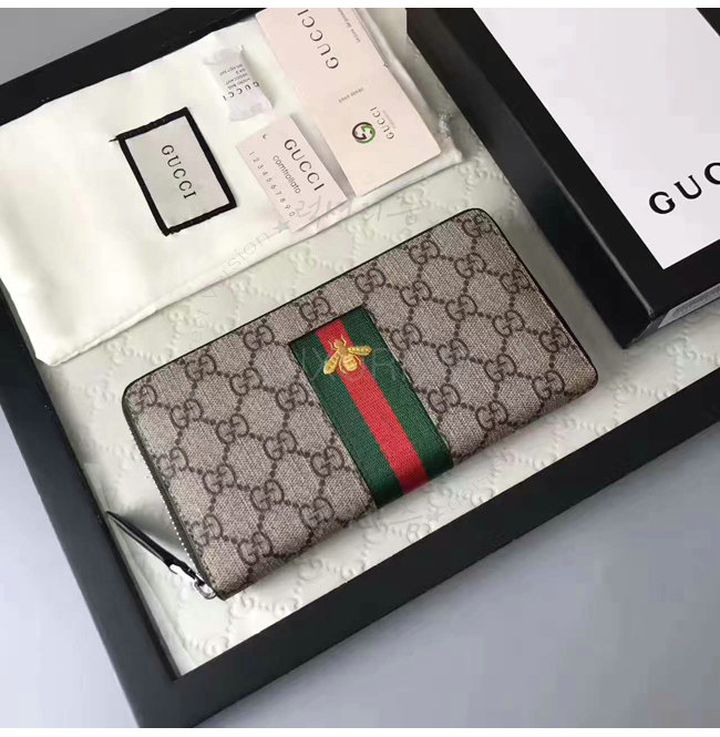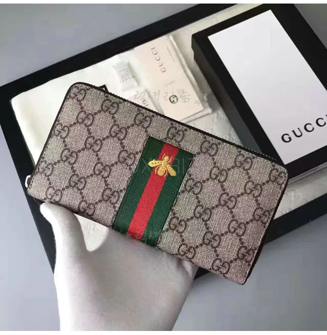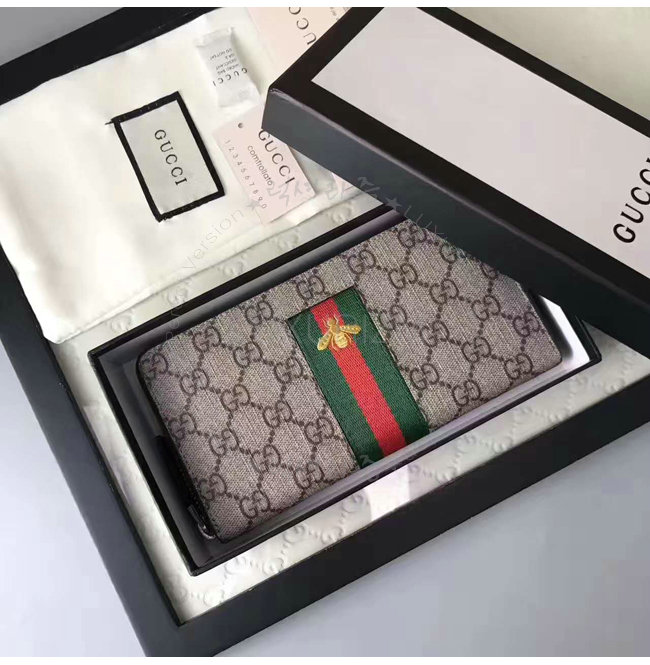 GUCCI-408831 8461 구찌 GG 수프림 캔버스 Web 꿀벌 자수 지피 어라운드 월릿