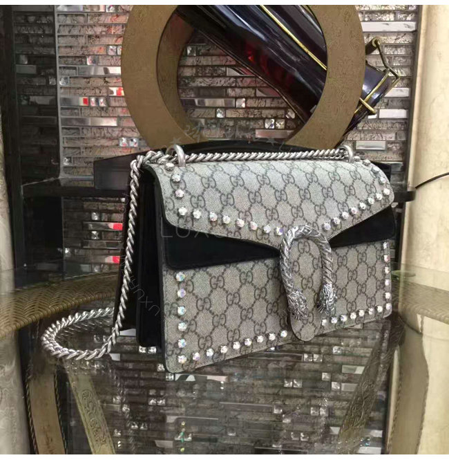 [스페셜오더]GUCCI-400249 8144 구찌 GG 수프림 크리스탈 트리밍 스몰 체인 숄더백 블랙