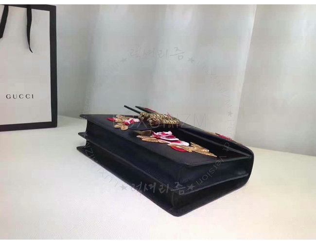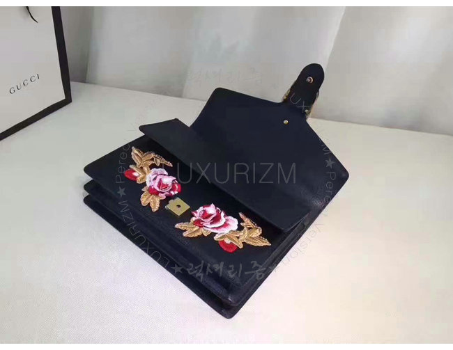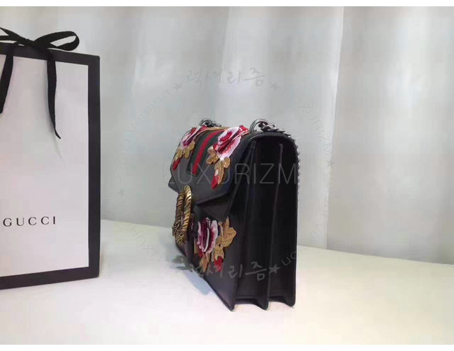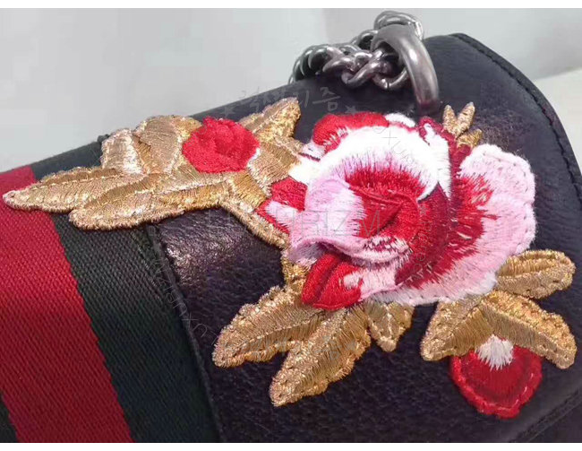 [스페셜오더]GUCCI-403348 8389 구찌 블랙 가죽 Web 플라워 자수 미디엄 숄더백