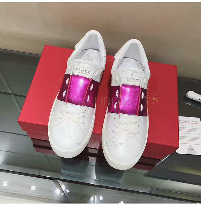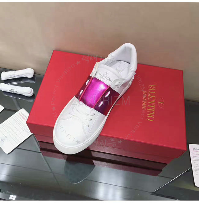 VALENTINO-0S0781 발렌티노 오픈 화이트 핑크 스니커즈 여성용