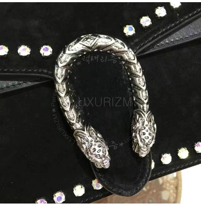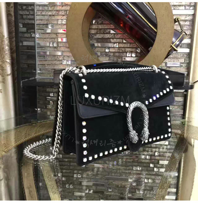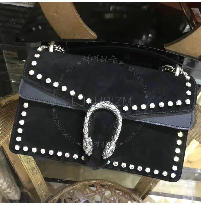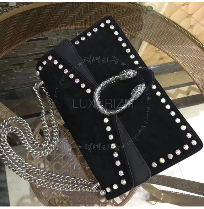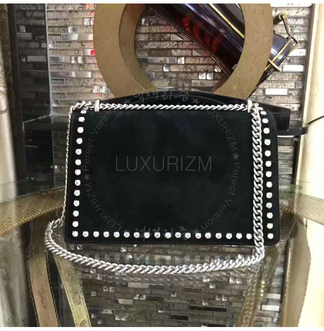[스페셜오더]GUCCI-400249 8144 구찌 스웨이드 가죽 크리스탈 트리밍 스몰 체인 숄더백 블랙