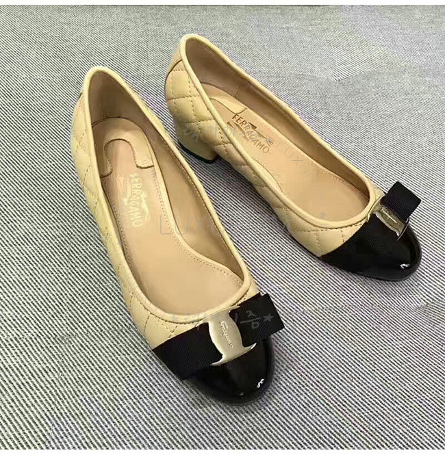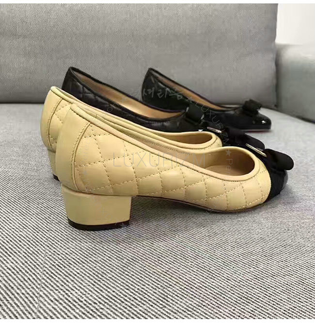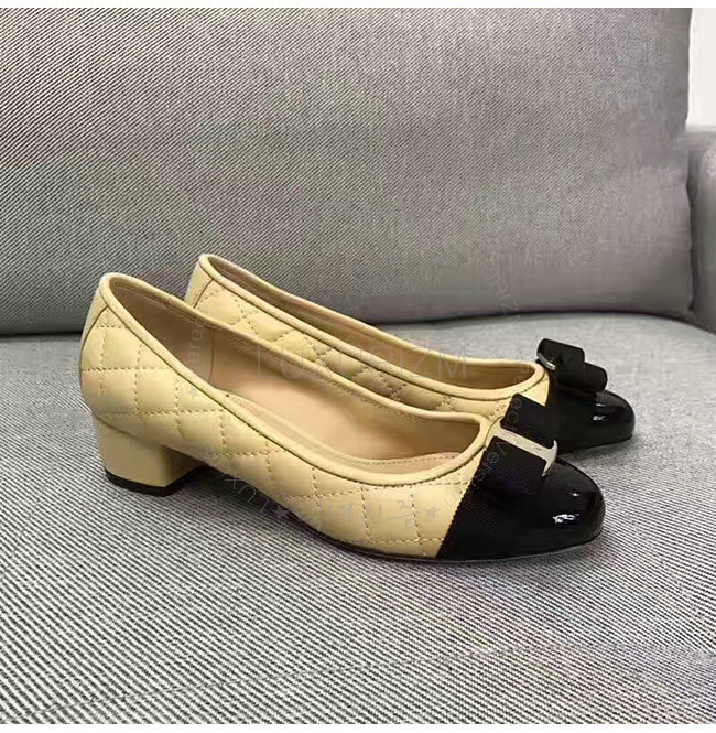 FERRAGAMO-01M832 페라가모 퀼티드 바라 베이지 펌프스 여성용