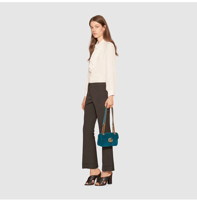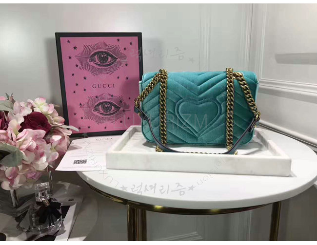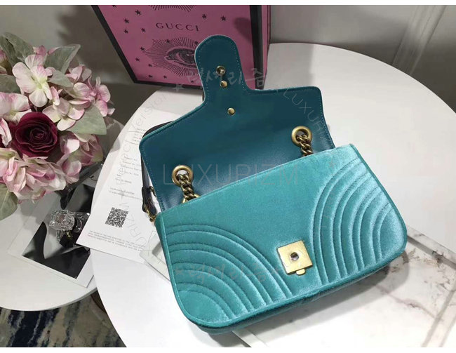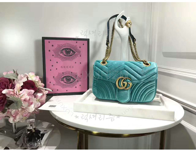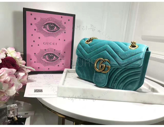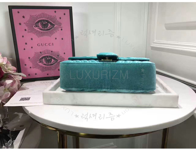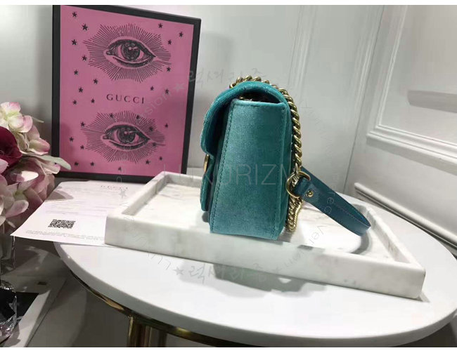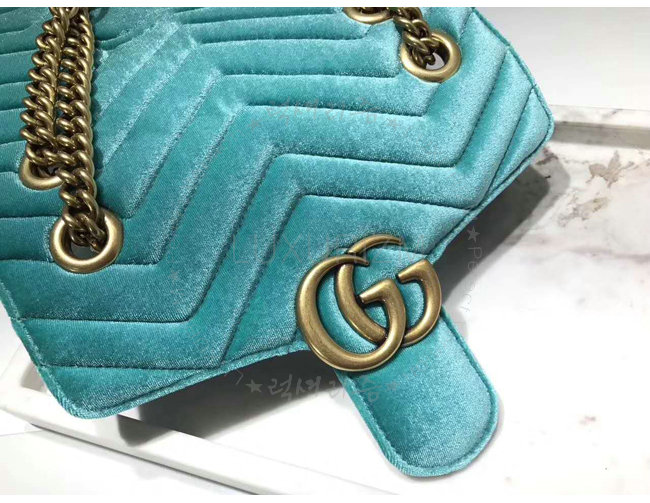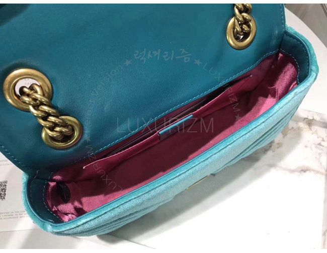 [스페셜오더]GUCCI-446744 4462 구찌 GG Marmont 마틀라세 미니 벨벳 숄더백 페트롤 블루