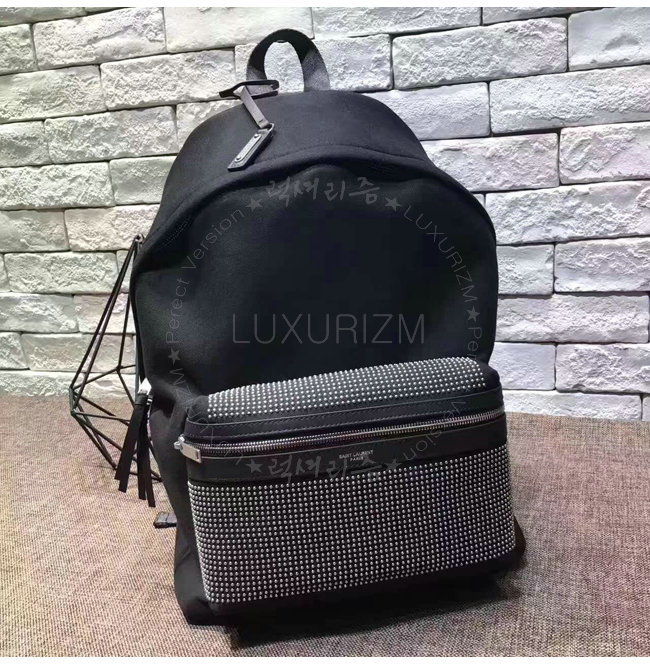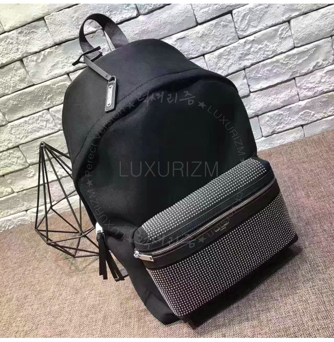 [스페셜오더]SAINT LAURENT-467985 생 로랑 블랙 트윌 가죽 시티 스터디드 백팩