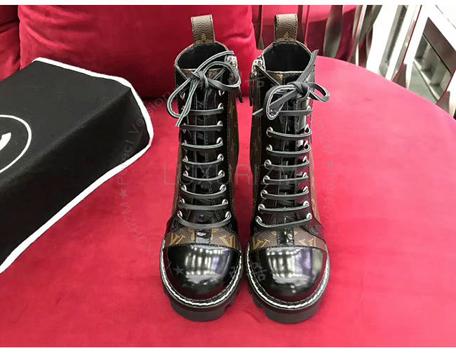 LOUIS VUITTON-1A2Y7W  루이비통 페이턴트 모노그램 캔버스 스타 트레일 앵클 부츠 여성용
