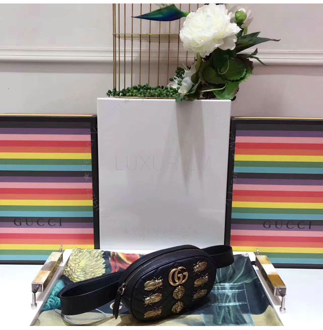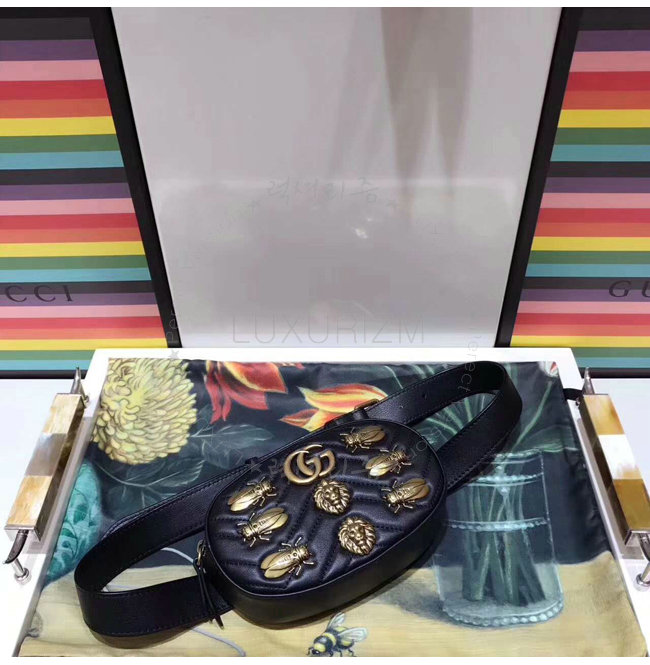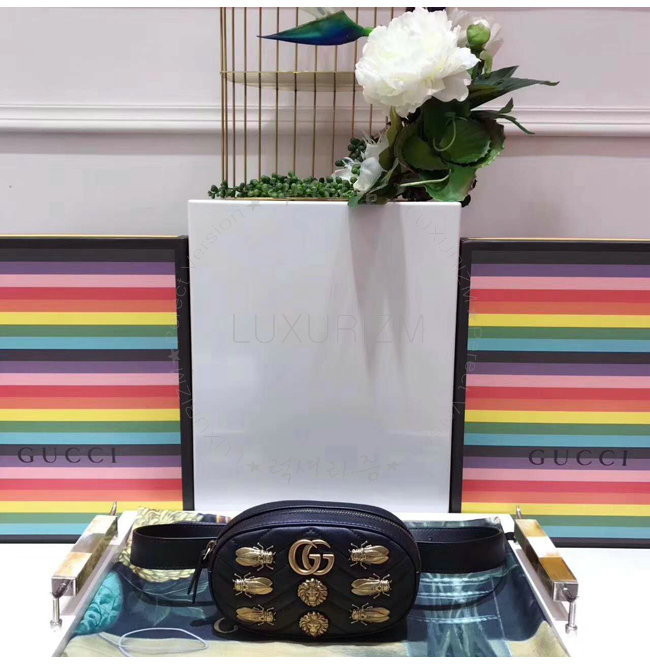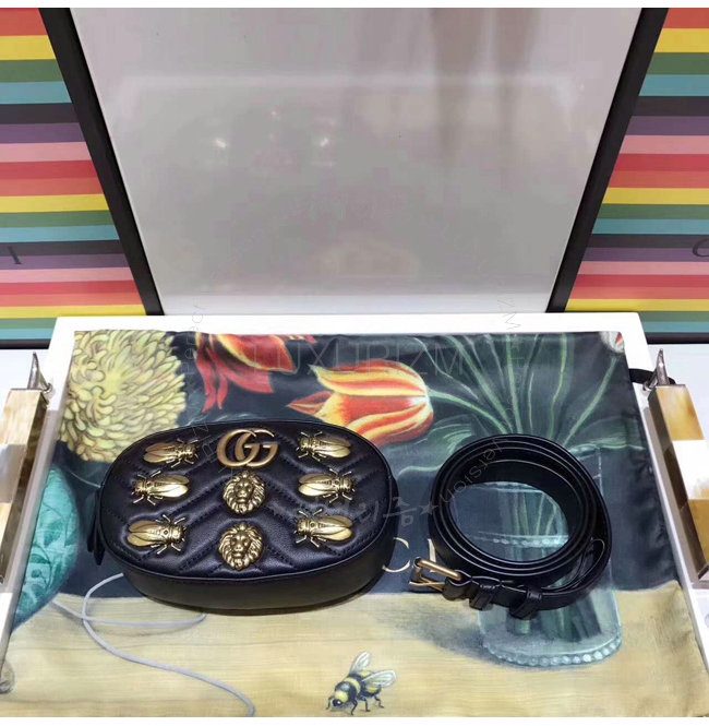 [스페셜오더]GUCCI-476434 1000 구찌 GG Marmont 마틀라세 가죽 애니멀 스터드 벨트 백 블랙