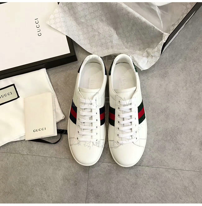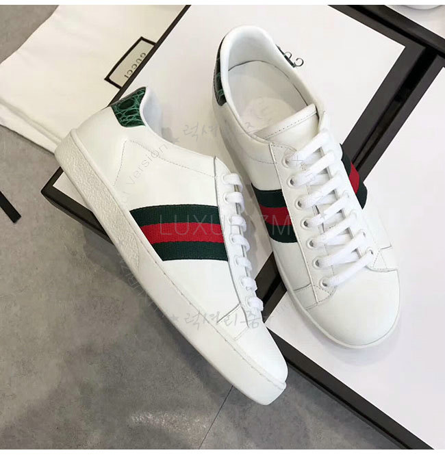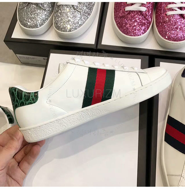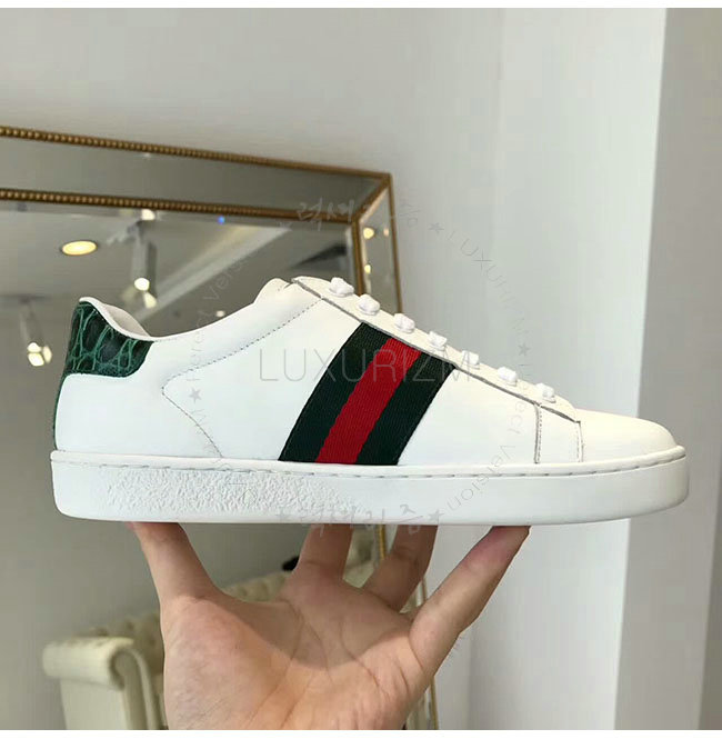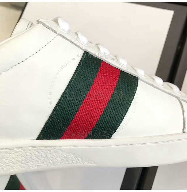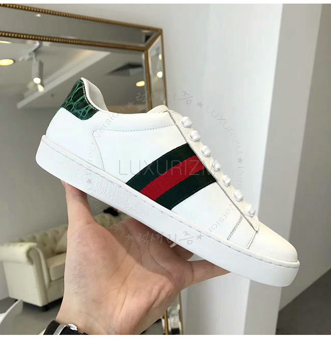 GUCCI-387993 9071 구찌 에이스 화이트 그린 가죽 로우탑 스니커즈 여성용