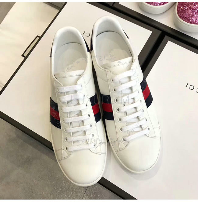 GUCCI-387993 9072 구찌 에이스 화이트 네이비 가죽 로우탑 스니커즈 여성용