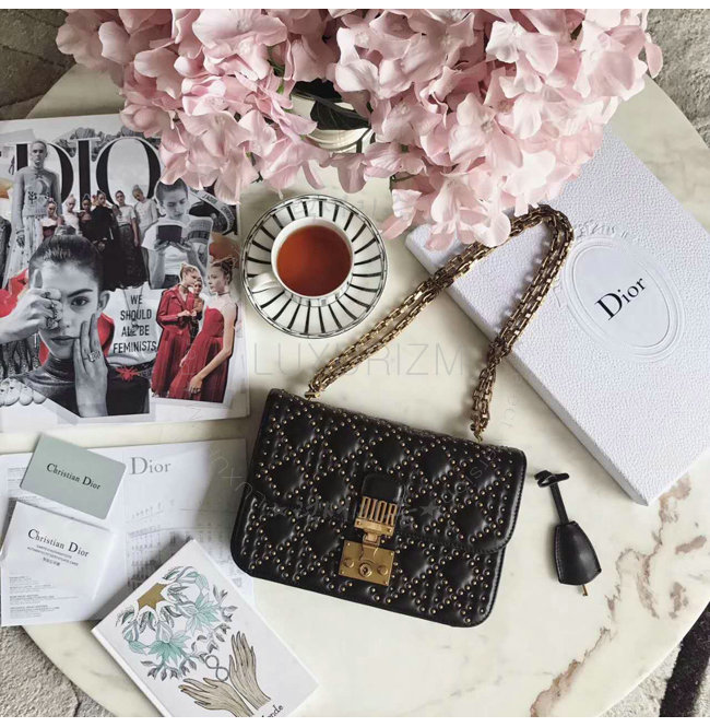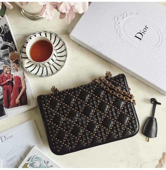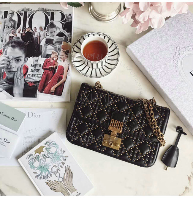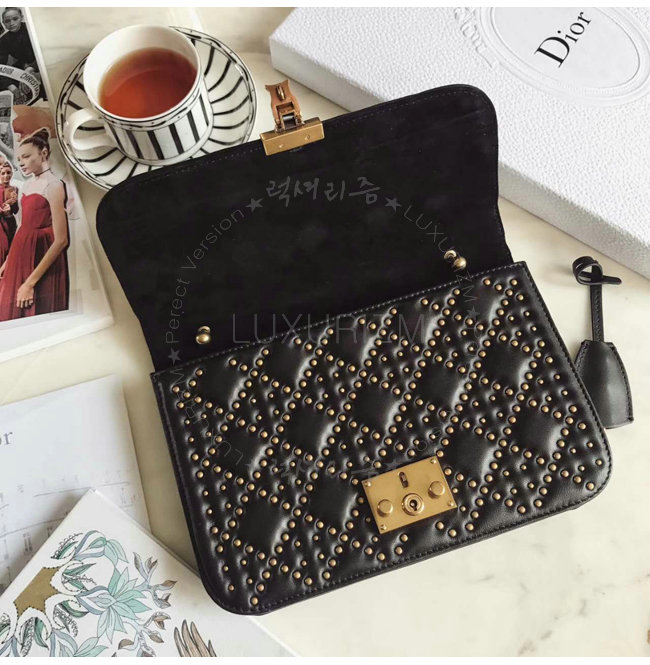 [스페셜오더]DIOR-M5818 디올 스터드 장식 까나쥬 양가죽 DIORADDICT 플랩 백 블랙