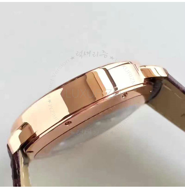 -핑크골드(IPG)특수이온 도금케이스/사파이어글라스 투명케이스백/가죽 스트랩.