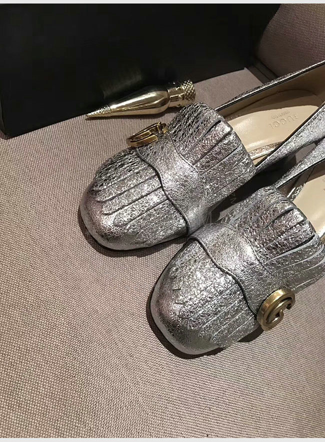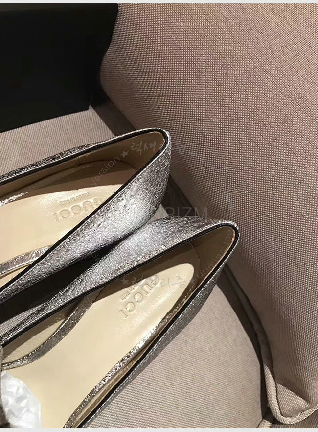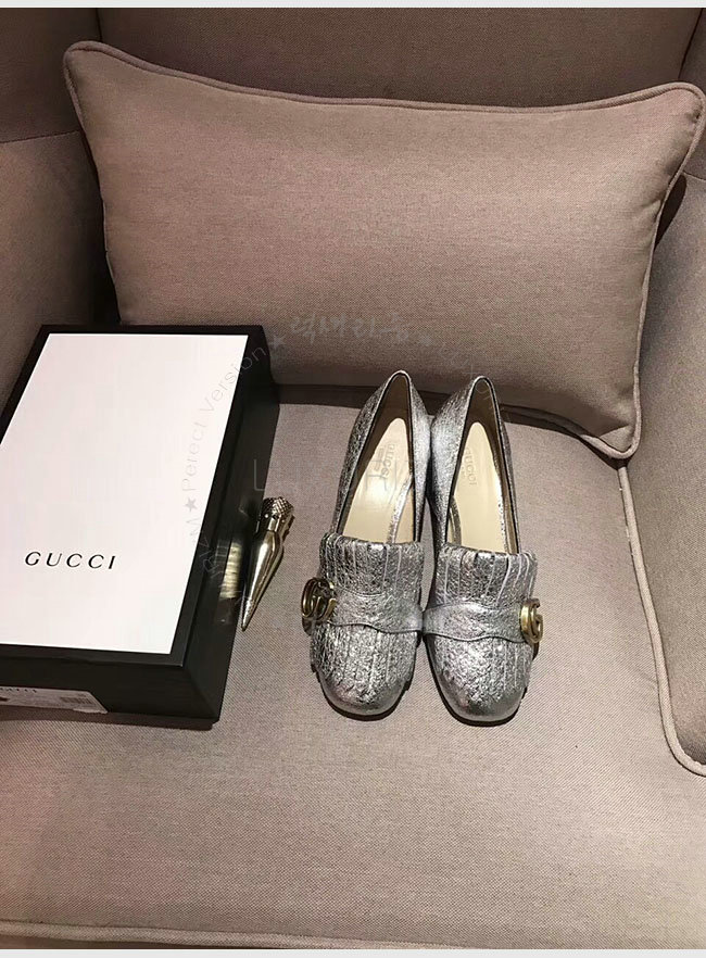 GUCCI-408208 8106 구찌 실버 메탈릭 가죽 미드힐 펌프스 여성용