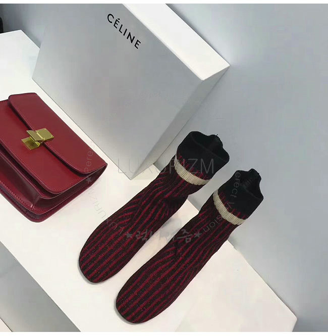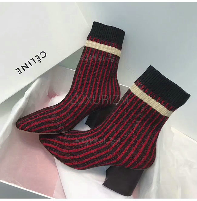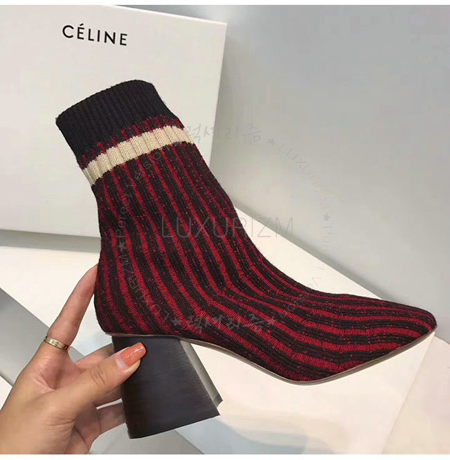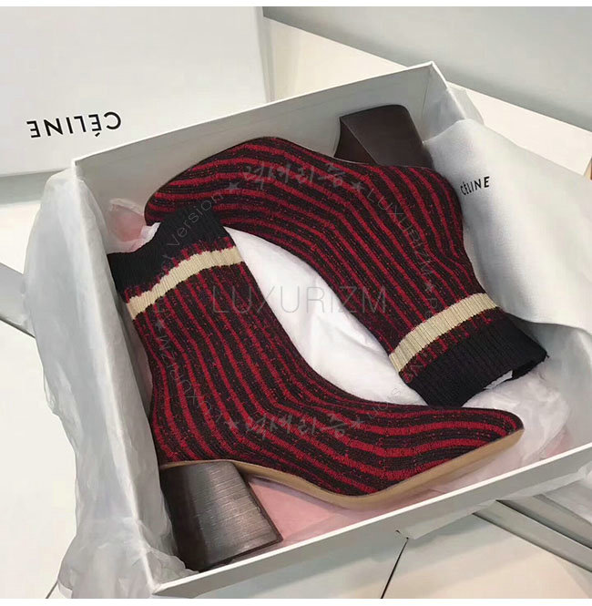 CELINE-319182 셀린느 레드 니트 삭스 앵클 부츠 여성용