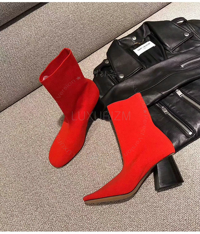 CELINE-319182 셀린느 레드 발레리나 니트 삭스 앵클 부츠 여성용