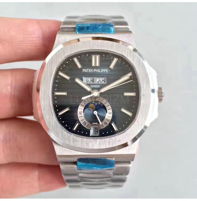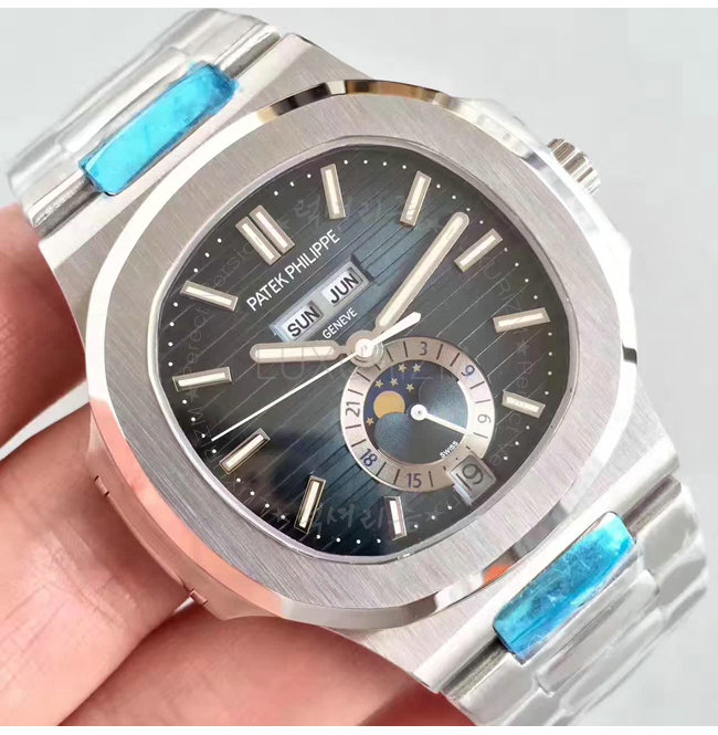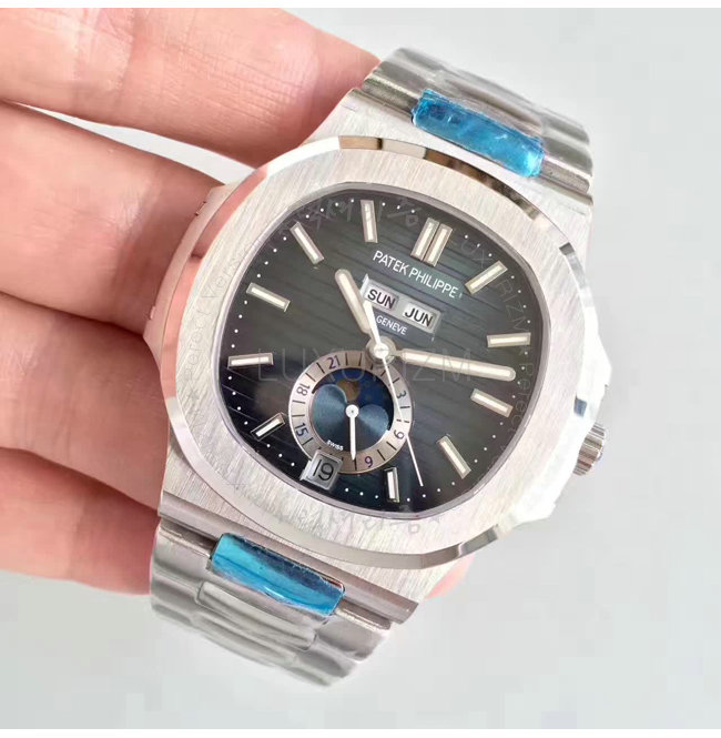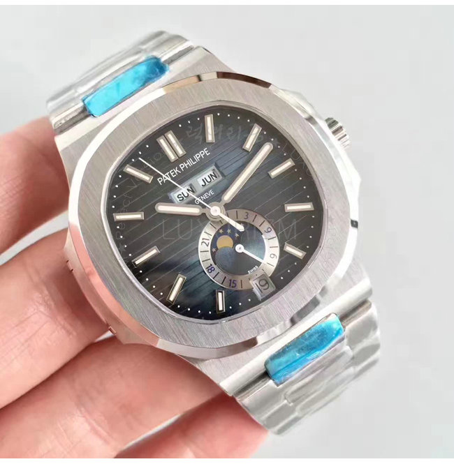 [스페셜오더]PATEK PHILIPPE-파텍 필립 노틸러스 문페이스 애뉴얼 캘린더 스틸 블랙 시계 40.5mm