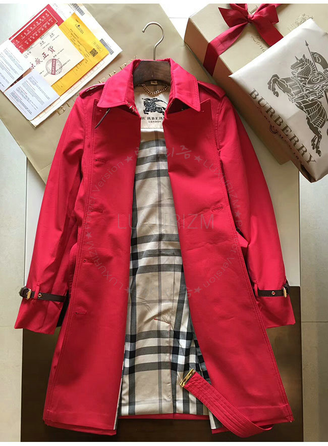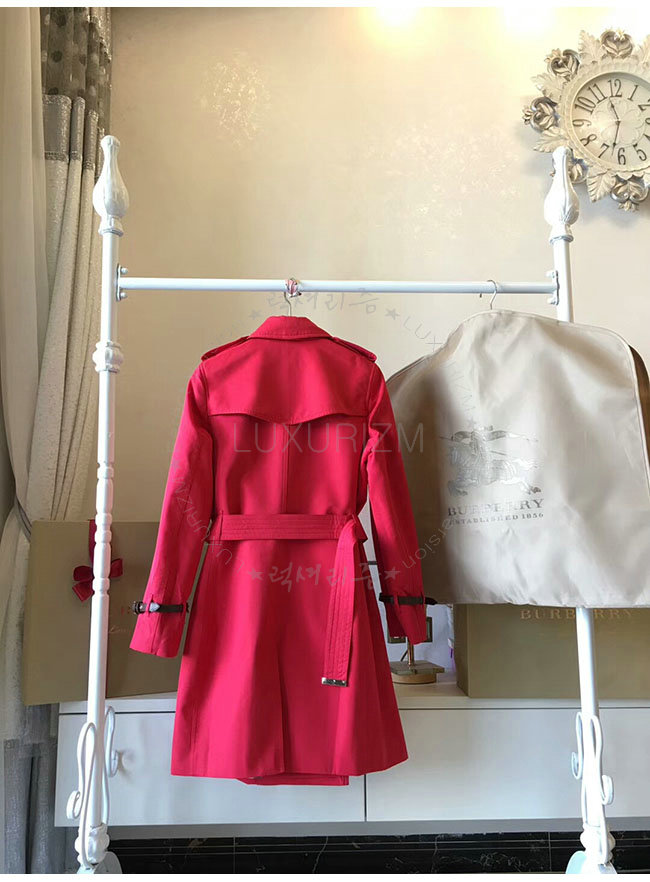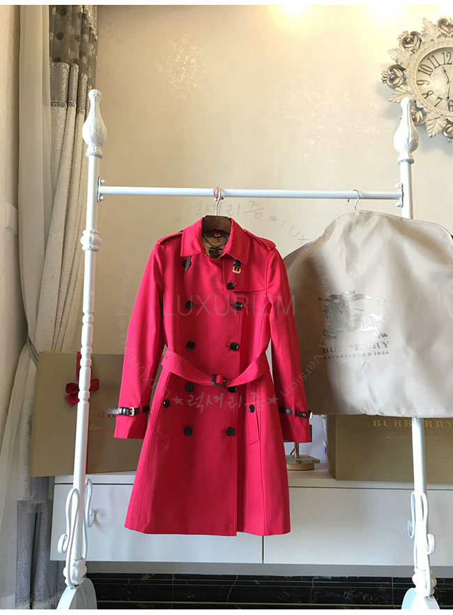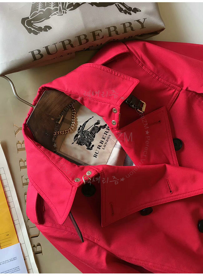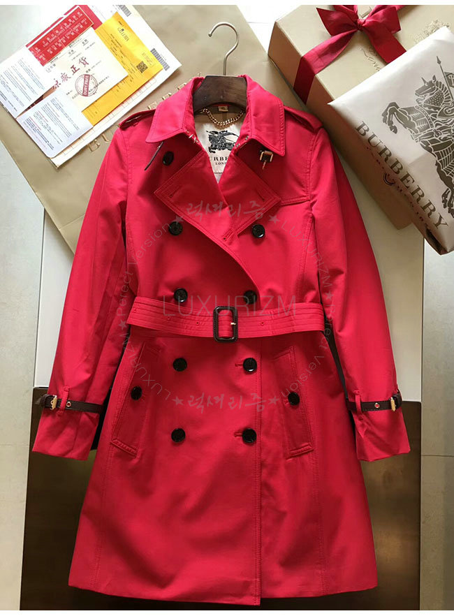 #버버리의류쇼핑몰 명품의류레플리카 홍콩이미테이션쇼핑몰 럭셔리즘 [스페셜오더]BURBERRYI-40435811 버버리 가죽 트리밍 코튼 개버딘 레드 트렌치코트 여성용