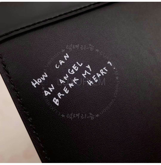 안쪽의 슬롯포켓 내부 지퍼포켓 프론트 플랩 안쪽에 써있는 HOW CAN AN ANGEL BREAK MY HEART.