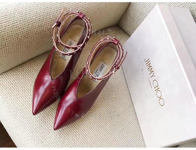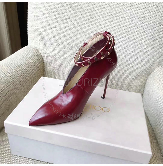 JIMMY CHOO-LARK 지미추 와인 가죽 라크 부츠 여성용