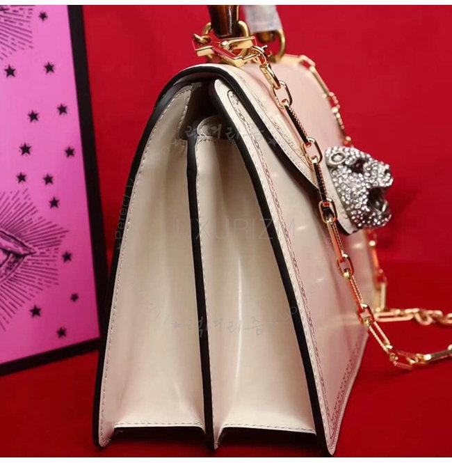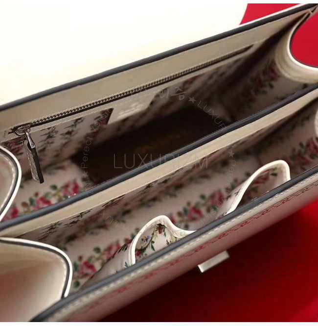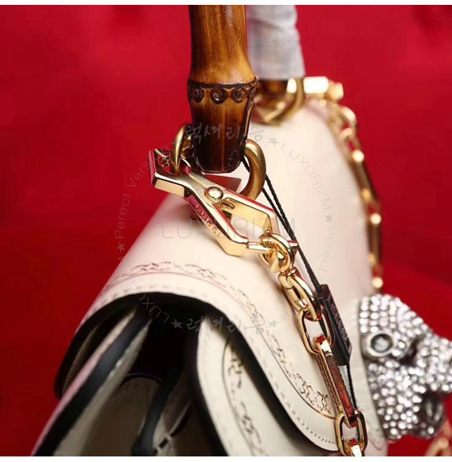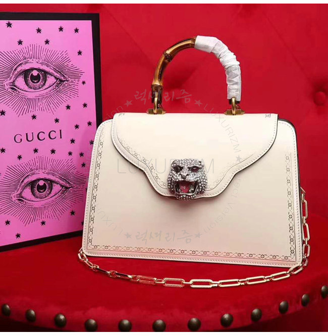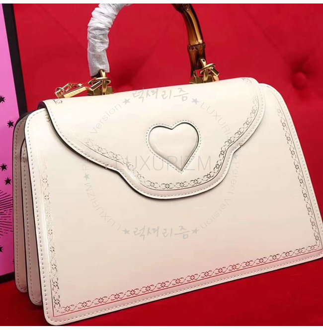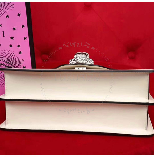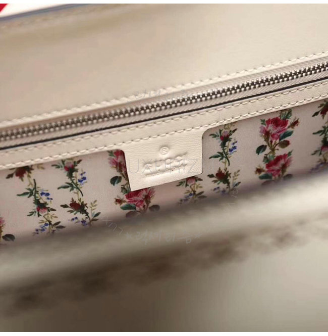 [스페셜오더]GUCCI-495881 9176 구찌 화이트 가죽 프레임 프린트 탑 핸들 백