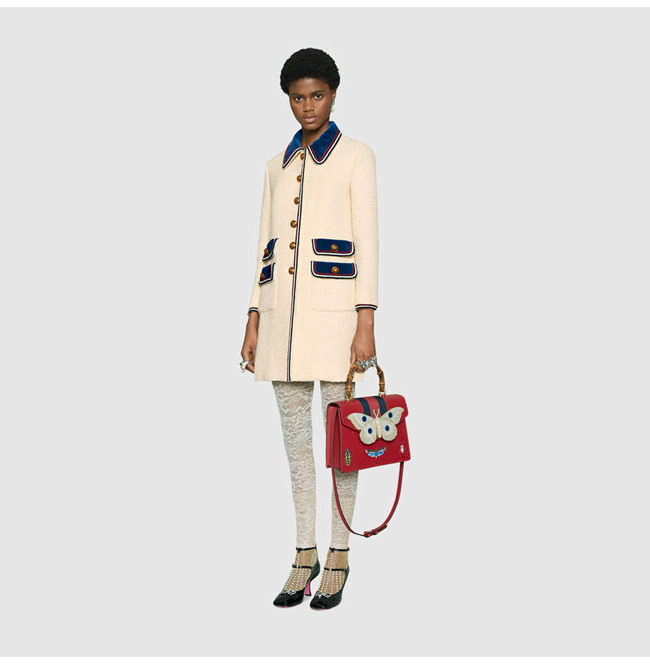 [스페셜오더]GUCCI-488691 9680 구찌 타조 가죽 나방 트리밍 탑 핸들 백