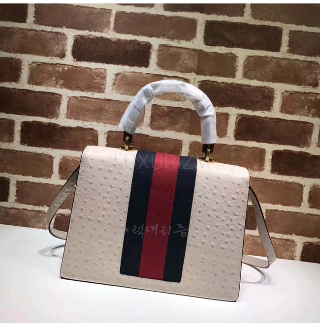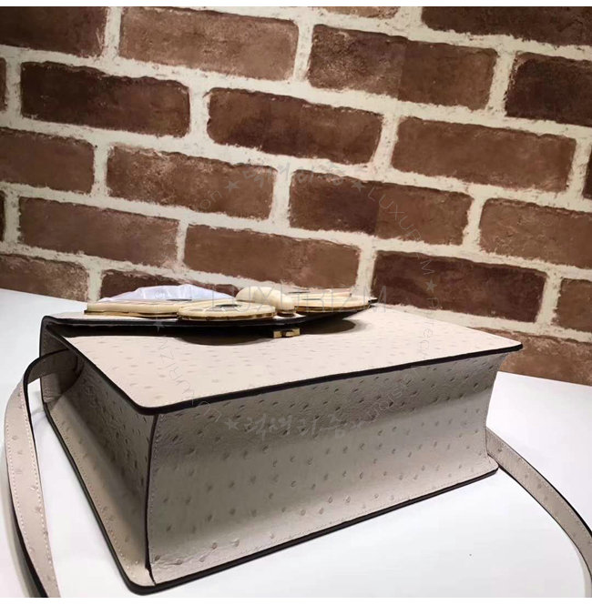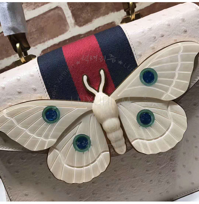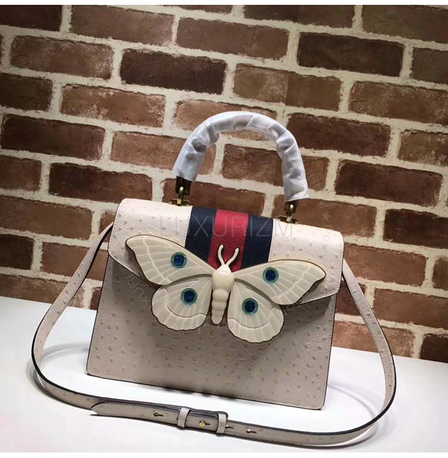 [스페셜오더]GUCCI-488691 9680 구찌 타조 가죽 나방 트리밍 탑 핸들 백