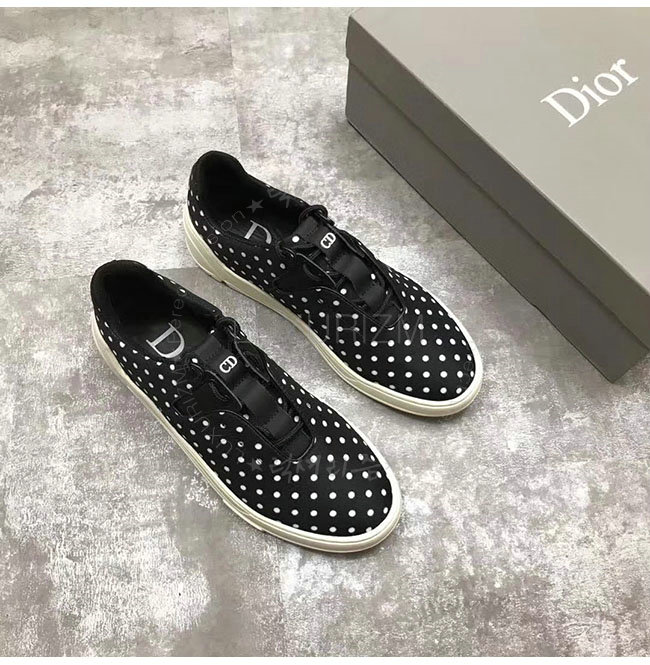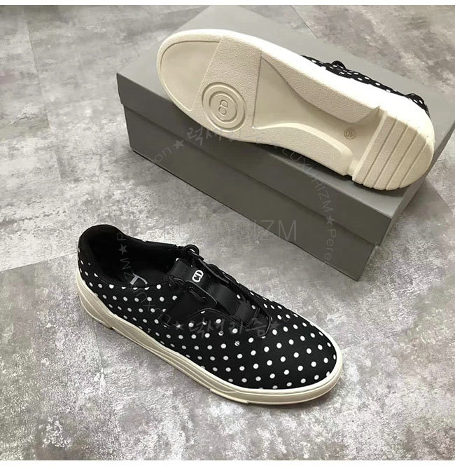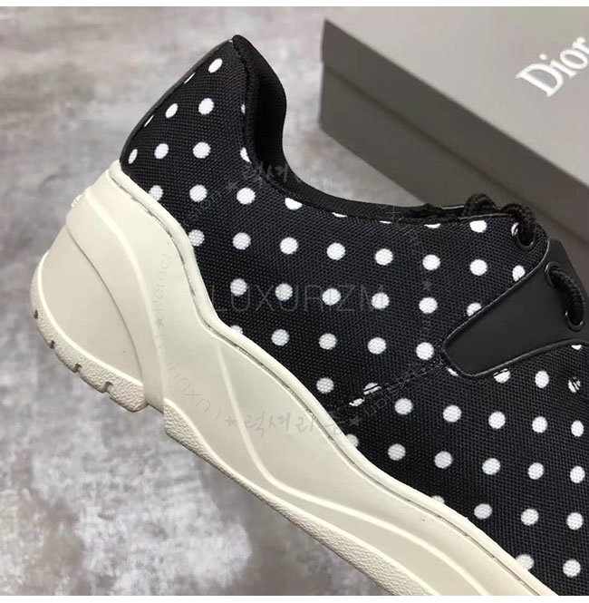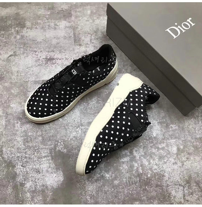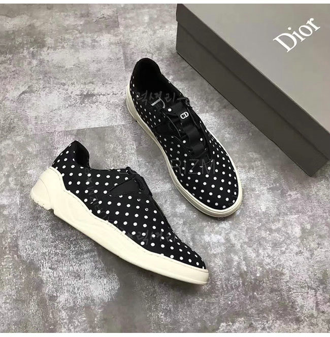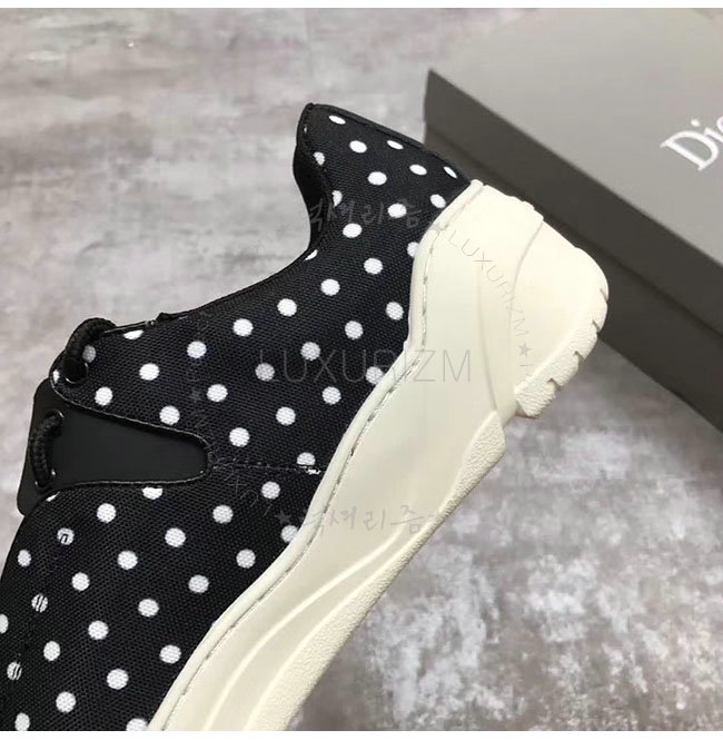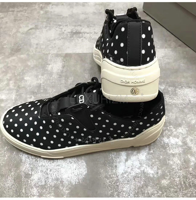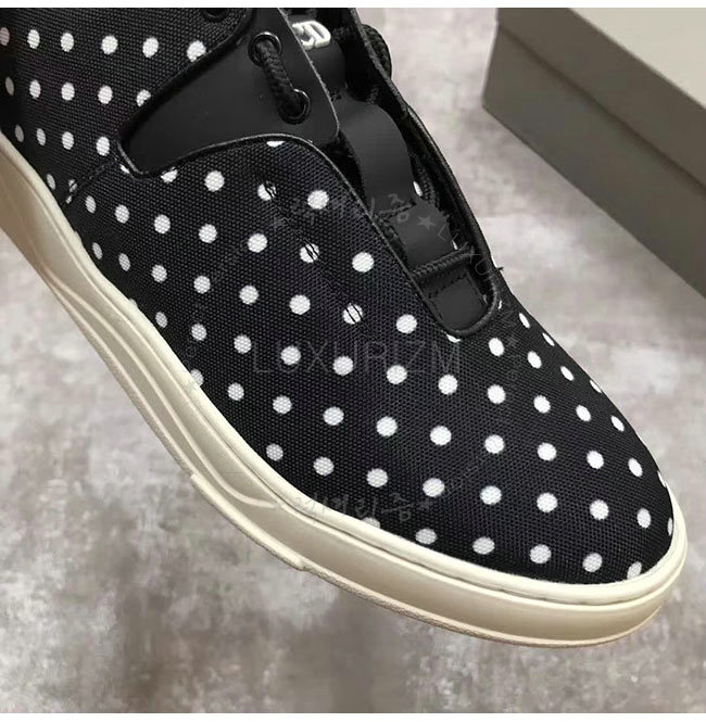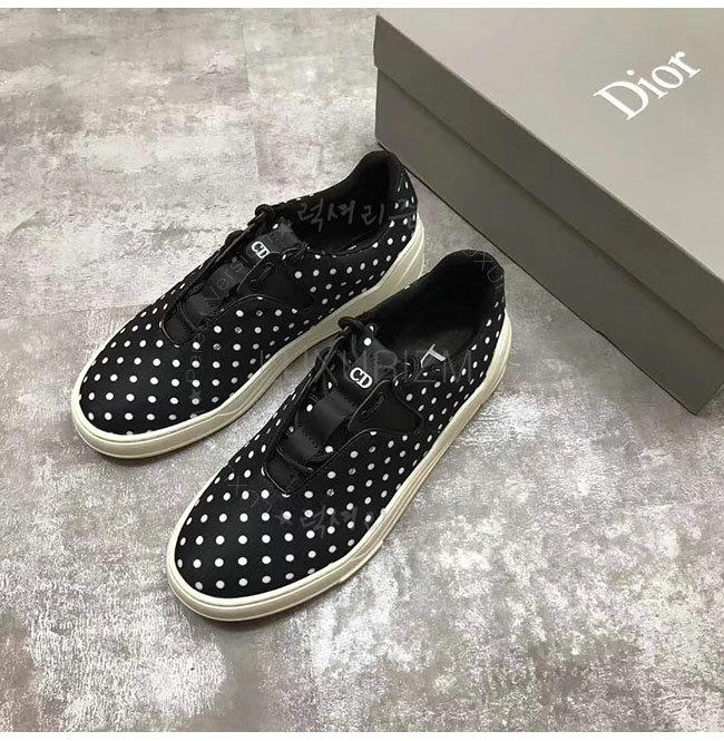 DIOR-3SN146 디올 블랙 송아지 가죽 도트 패턴 블랙 패브릭 스니커즈 남성용