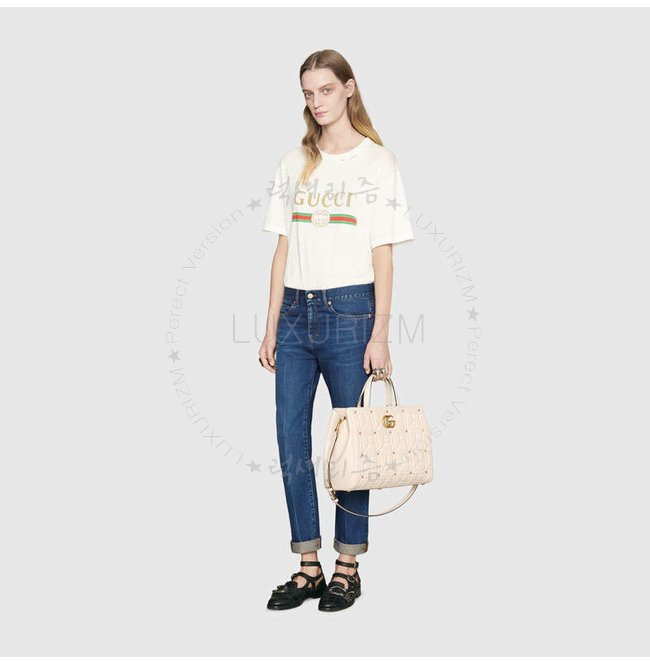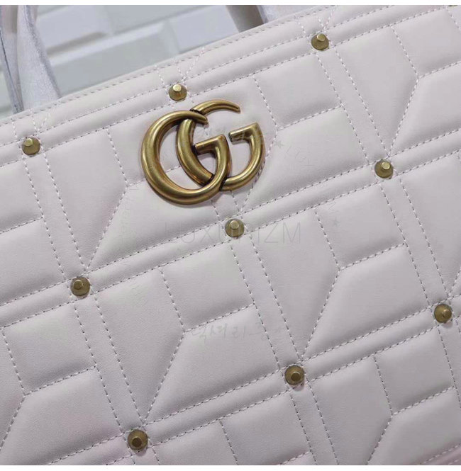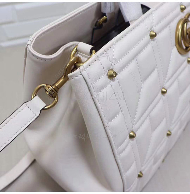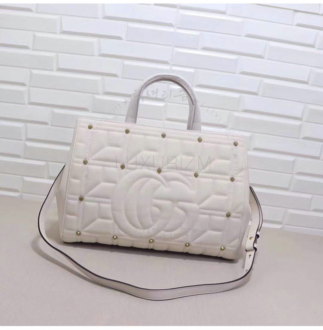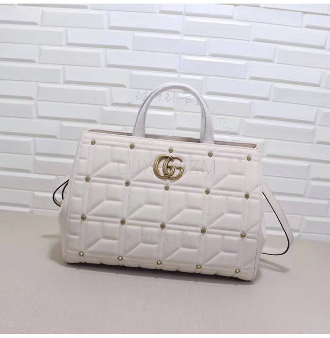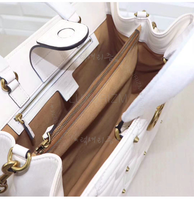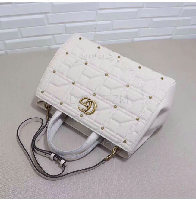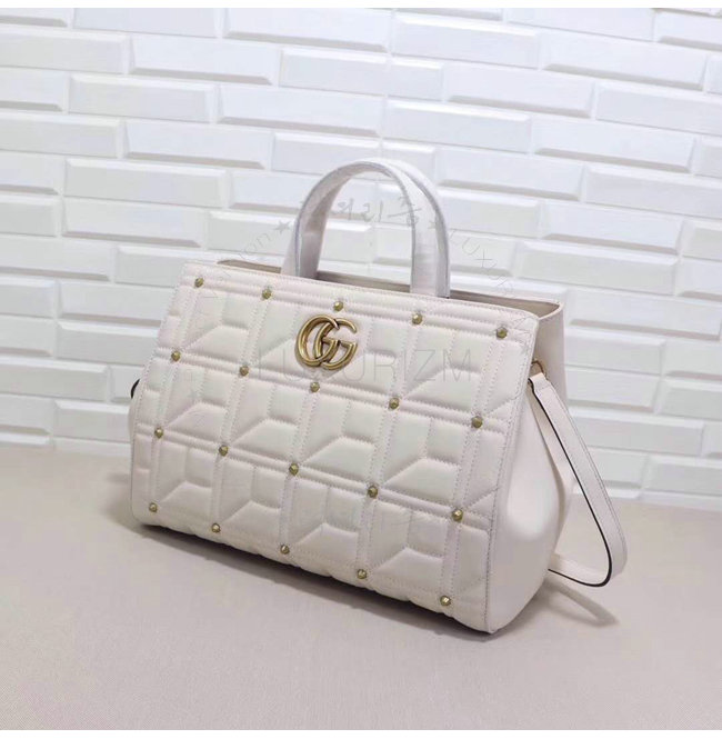 [스페셜오더]GUCCI-443505 9022 구찌 화이트 마틀라세 가죽 스터드 장식 탑 핸들 백