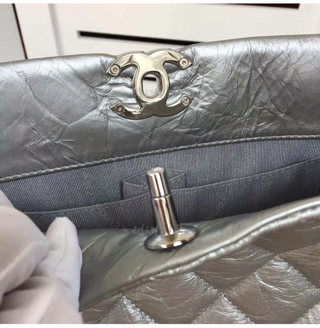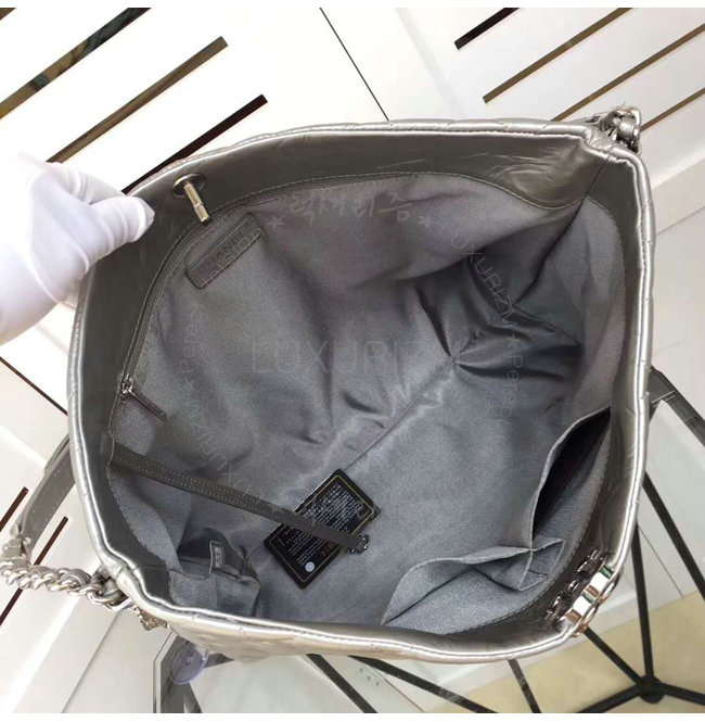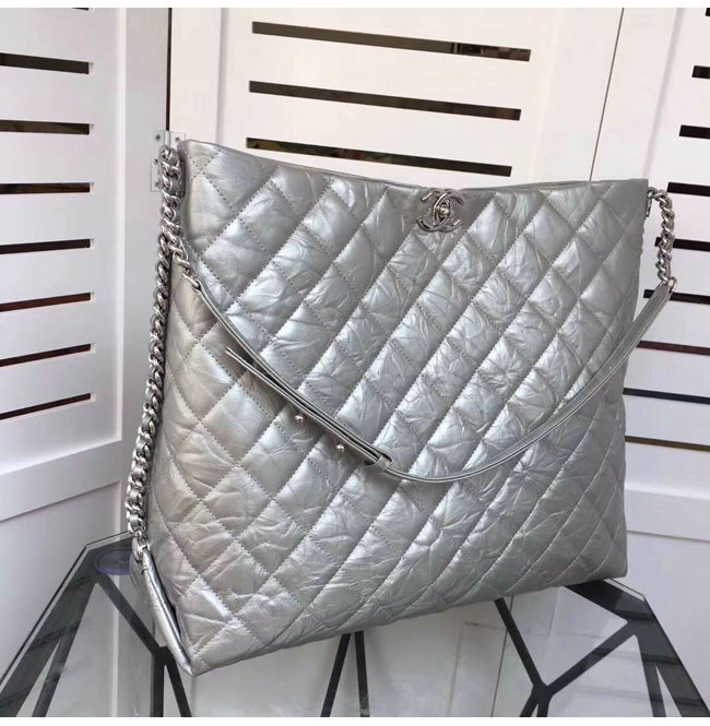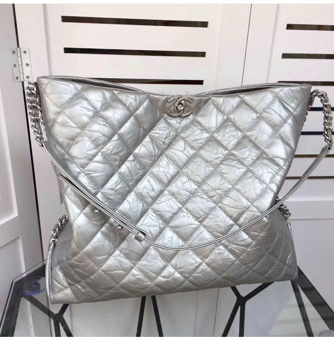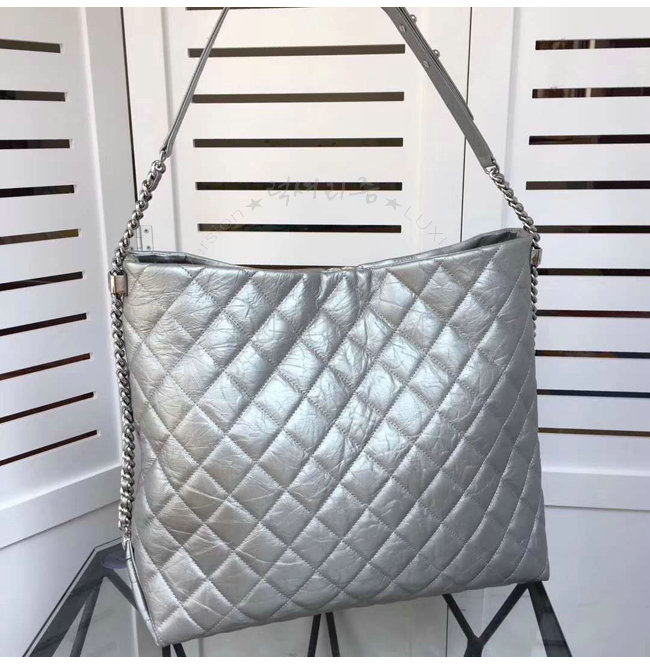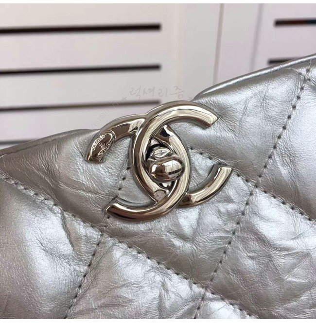 [스페셜오더]CHANEL-A91977 샤넬 메탈릭 크럼플드 카프스킨 실버 호보 핸드백