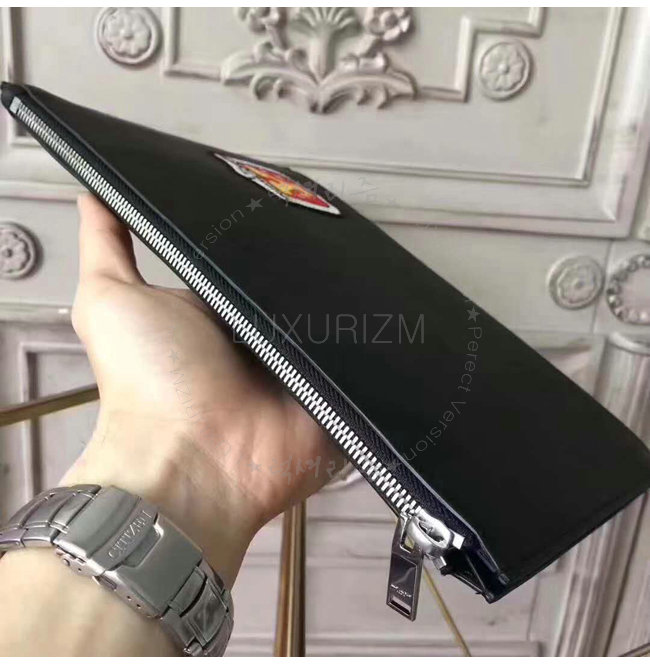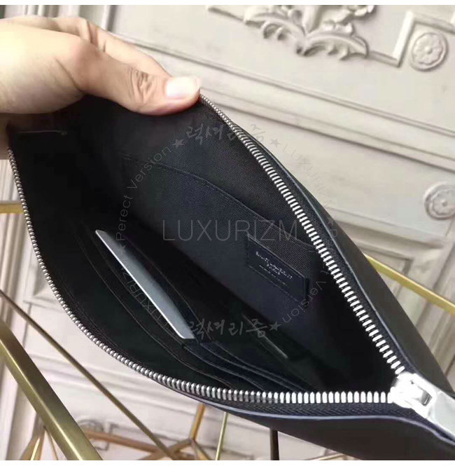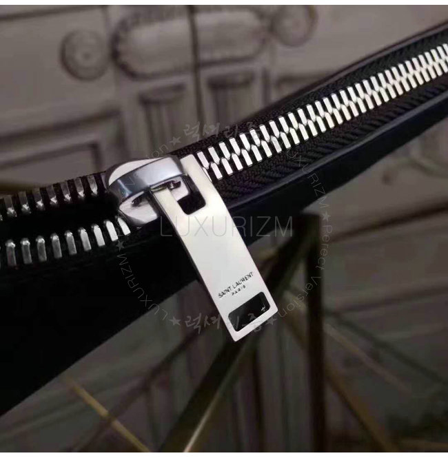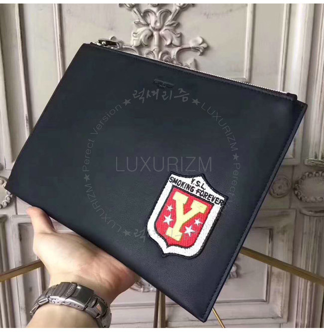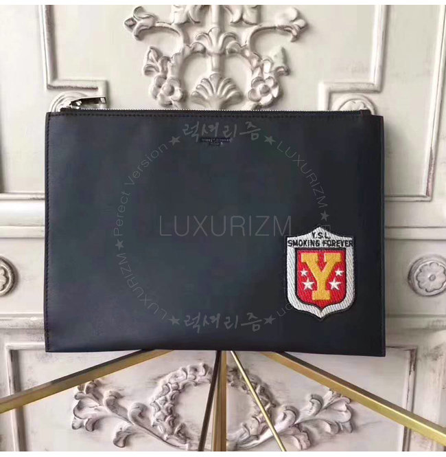 [스페셜오더]SAINT LAURENT-397295 생 로랑 블랙 가죽 생 로랑 파리 SMOKING FOREVER 패치 지퍼 태블릿 홀더