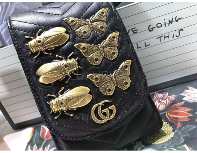 [스페셜오더]GUCCI-488420 1000 구찌 GG Marmont 블랙 마틀라세 가죽 애니멀 스터드 벨트 악세사리