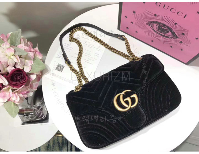 [스페셜오더]GUCCI-443497 1000 구찌 GG Marmont 마틀라세 블랙 벨벳 숄더백