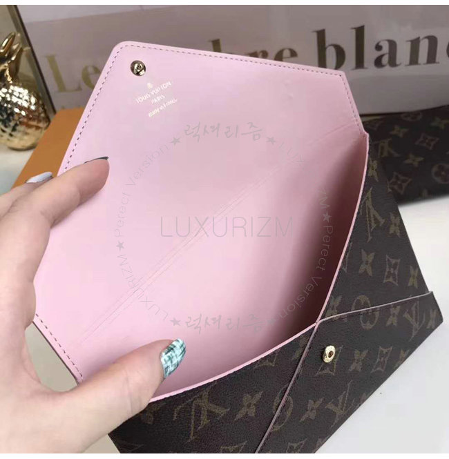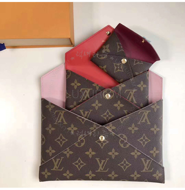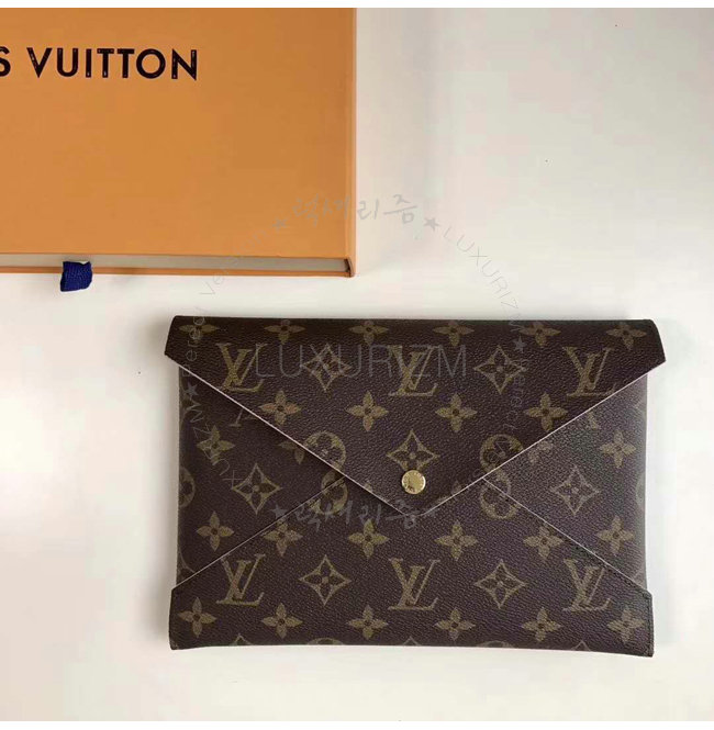 엔벨로프 포쉐트 1개 모노그램 코팅 캔버스 소가죽내피 유광 골드색상 금속디테일.